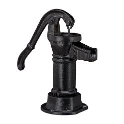 Mit der Deko Pumpe im Mini-Format bereichern Sie Ihren Garten um einen Hingucker im antiken Design. Die Gartendekoration ist einer klassischen Schwengelpumpe nachempfunden und ganz in Schwarz gehalten. Da die Wasserpumpe aus Gusseisen gefertigt ist, punktet sie mit einer rustikalen Optik, die sie älter erscheinen lässt. Auch wenn die Gartenpumpe für dekorative Zwecke gedacht ist, lässt sich ihr Schwengel bewegen – dazu brauchen Sie lediglich die Schraube zu lockern. An Bohrlöcher für eine zuverlässige Verankerung im Boden ist bereits gedacht.