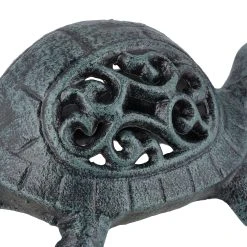 Die Deko Schildkröte ist ein tolles Accessoire für Garten, Terrasse und Balkon. Ob im Stein- oder Blumenbeet, neben dem Gartenteich oder auf Mauern und Steinen platziert – die Schildkröte mit dekorativem Panzer ziert den Außenbereich und sorgt für maritimes Flair. Dank der Fertigung aus wetterfestem Gusseisen wirst Du lange Freude an der robusten Gartenfigur haben. Die Dekofigur eignet sich auch hervorragend als Geschenkidee für Schildkrötenfans und Liebhaber von Gartendeko.