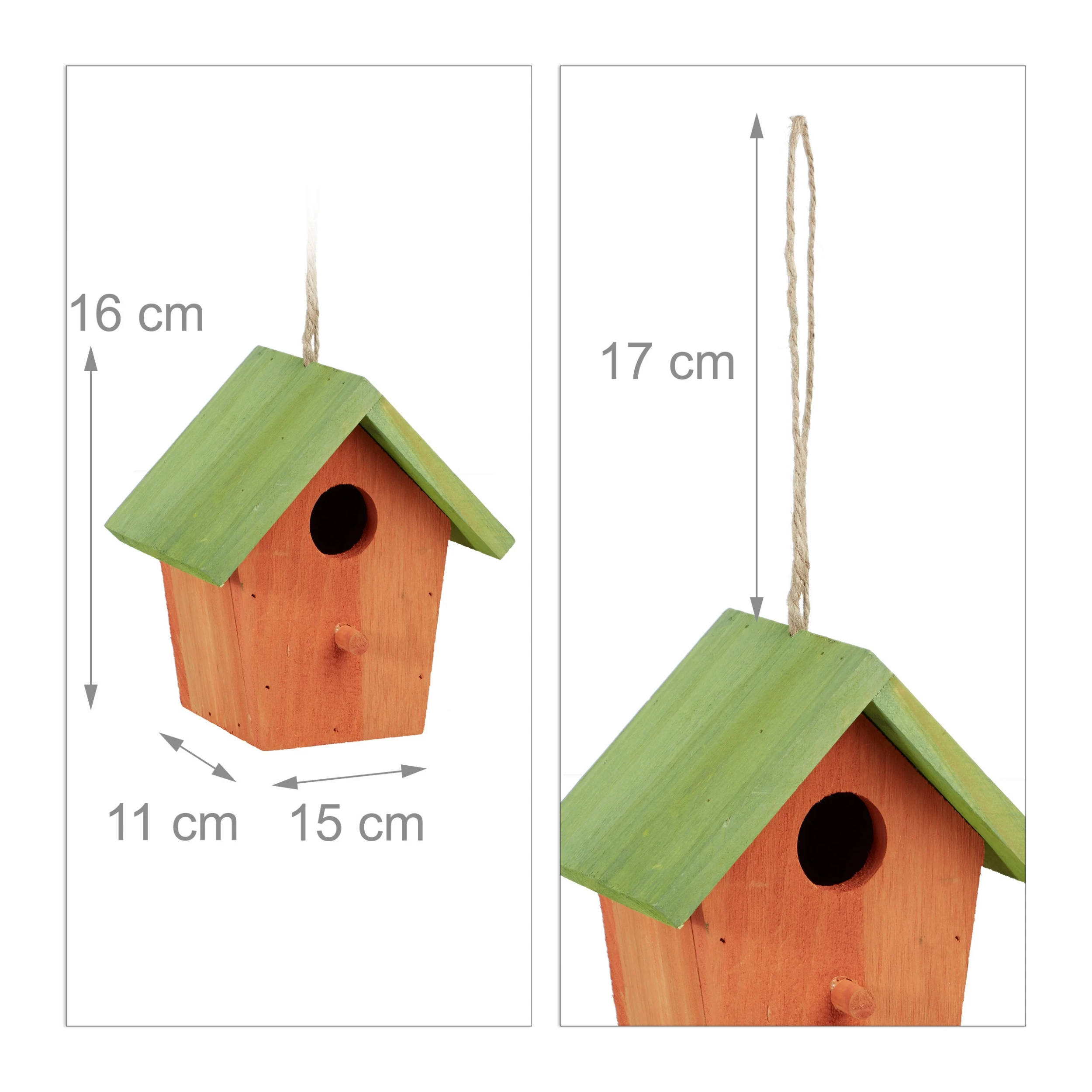 Setzen Sie bunte Akzente mit diesem niedlichen Vogelhäuschen in knalligen Farben. Als Frühlingsdeko schmücken Sie damit Ihre Wohnung oder Ihren Garten. An den angebrachten Jutekordeln können Sie das Mini-Vogelhaus an Zweige hängen oder es dekorativ auf der Terrasse hinstellen. Die bunten Farben versprühen gute Laune und stimmen Sie auf den Frühling ein.