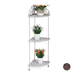 Das Stehregal aus Metall schafft auf 3 fächerförmigen Ablagen endlich den nötigen Platz, um Ihre geliebten Pflanzen und Blumen dekorativ zu präsentieren. Bunte Blüten, Kräuter und Grünpflanzen lassen sich damit optisch in Szene setzen. Mit ihrem romantischen Antik-Design und den geschwungenen Formen ist das Blumenregal zudem auch selbst ein echter Blickfang. Es eignet sich zur Indoor- sowie Outdoor-Nutzung und versprüht verspielten Vintage-Charme auf dem Balkon, im Garten oder in der Wohnung.