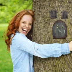 Mit der Feentür und den beiden Feenfenstern verwandeln Sie einen Baum in wenigen Augenblicken in eine märchenhafte Behausung, die garantiert neugierige Blicke anlocken wird. Gerade Kinder werden aus dem Staunen nicht mehr herauskommen, sobald sie die Elfentür entdeckt haben. Das Feentor hat ein kleines Schild mit bunten Blumen, das über die magischen Bewohner aufklärt.