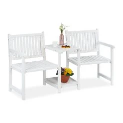 Was gibt es schöneres, als an einem warmen Sommertag die Sonne im eigenen Garten oder auf dem Balkon zu genießen? Verweile dazu auf der dekorativen wie bequemen Gartenbank für 2 Personen. Der besondere Clou – die Holzbank besteht aus 2 einzelnen Stühlen, die in der Mitte durch zwei Tischplatten miteinander verbunden sind. Genieße romantische Abende auf der Balkonbank mit integrierter praktischer Ablagefläche für Weingläser, Snacks oder den Kaffee am Nachmittag.