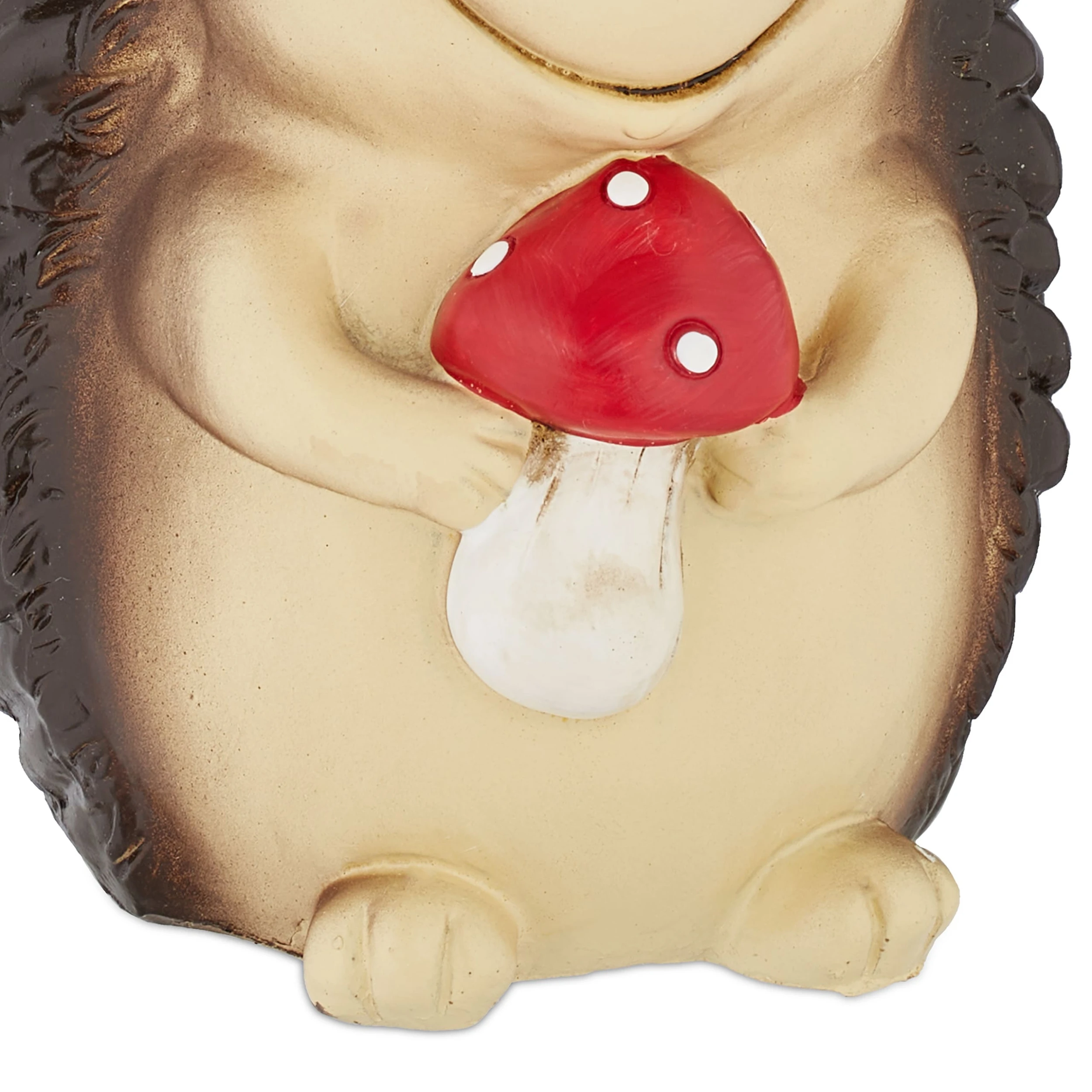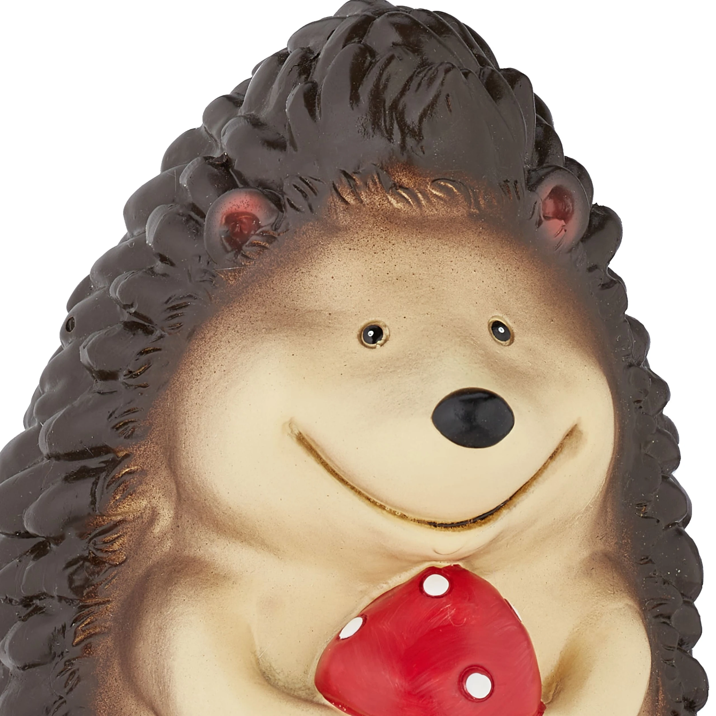 Diese niedliche Igel-Deko ist ein echter Hingucker, egal ob in Deinem Garten, auf dem Balkon oder im Wohnbereich auf der Kommode. Mit seinem süßen verschmitzten Lächeln und dem Fliegenpilz in seinen Pfoten entzückt der Igel jeden Besucher und auch Dich Tag für Tag. Die wetterfeste Gartendekofigur ist dabei nicht nur zur Herbstzeit, sondern auch ganzjährig ein echter Blickfang. Stelle die Dekofigur selbst Zuhause auf oder verschenke sie an Freunde des stacheligen Tiers.