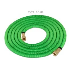Der flexible Gartenschlauch eignet sich zur bequemen Bewässerung im Garten oder auf dem Balkon! Er erleichtert Dir das tägliche Gießen der Blumen, Pflanzen oder kann zur Reinigung der Gartenmöbel genutzt werden, wobei er dank Polyester-Gewebe stets knickfrei bleibt. Der dehnbare Schlauch verlängert sich bei Wasserdruck von 5 m auf bis zu 15 m, womit er zugleich lang und platzsparend ist. Den Flexschlauch kannst Du mit dem beiliegenden Adapter an verschiedenen Wasseranschlüssen anschließen.