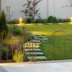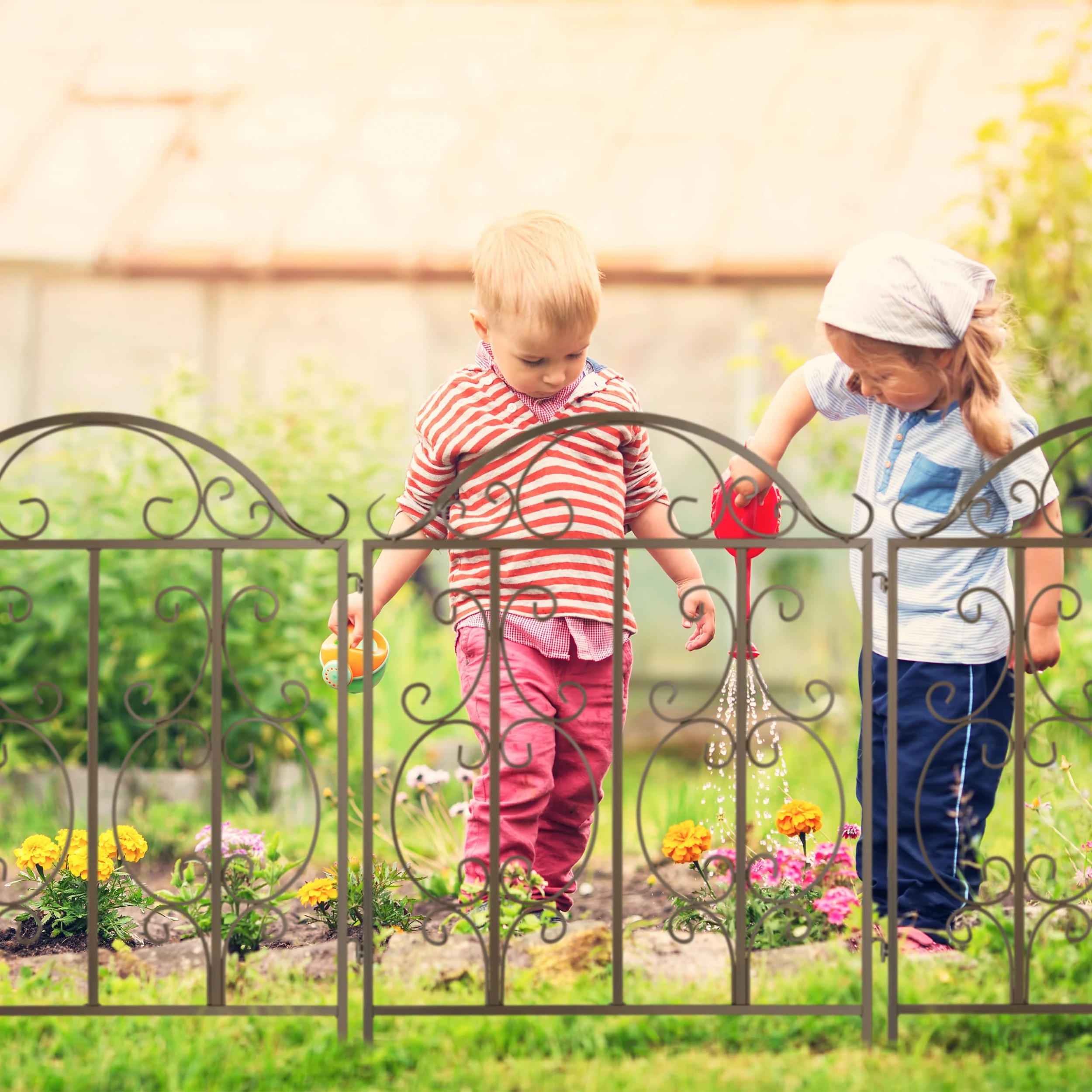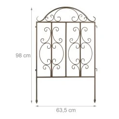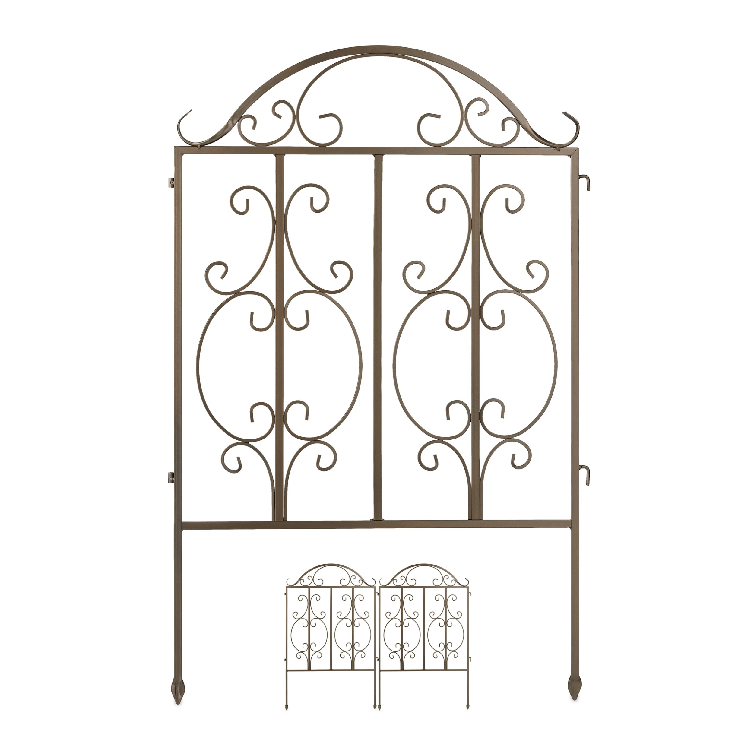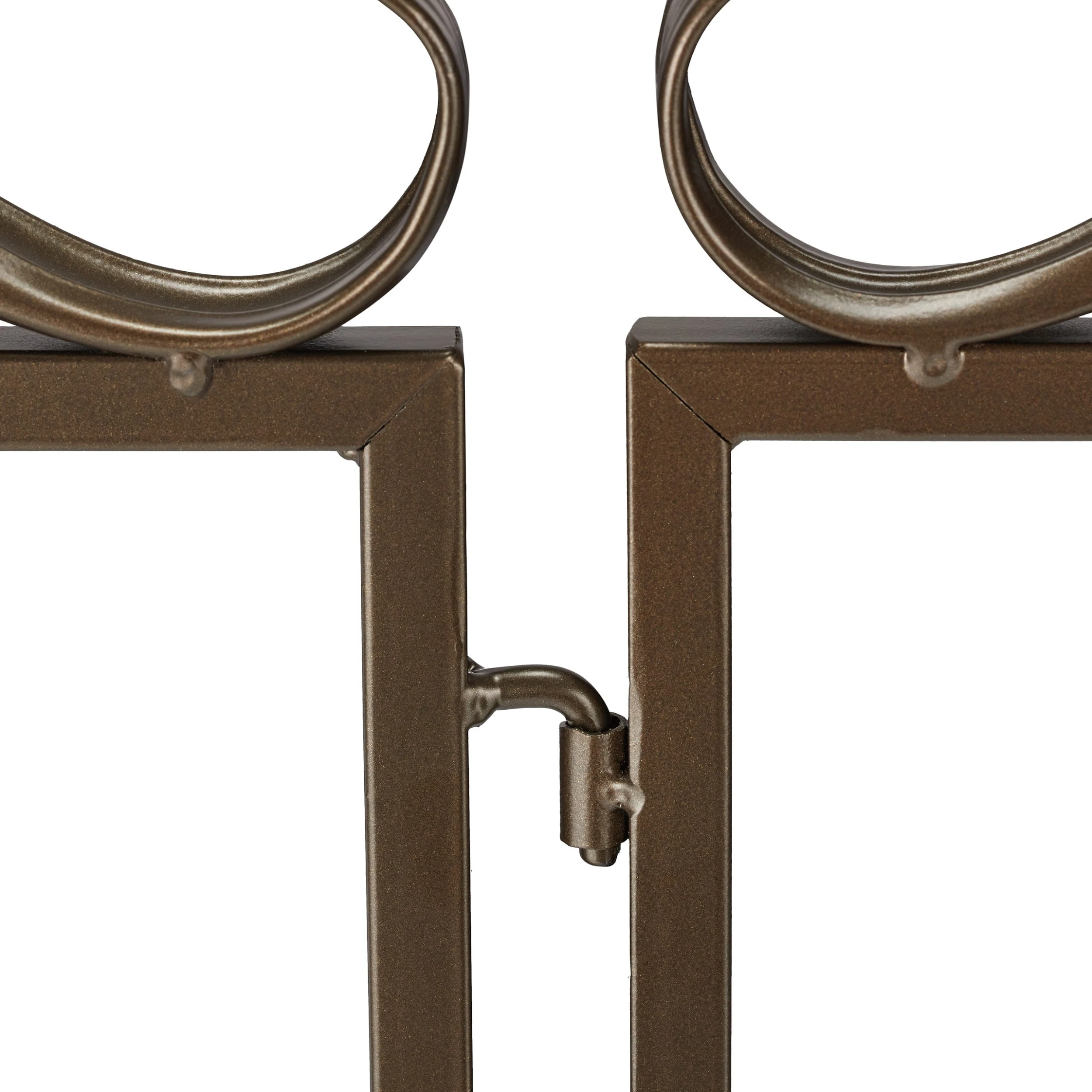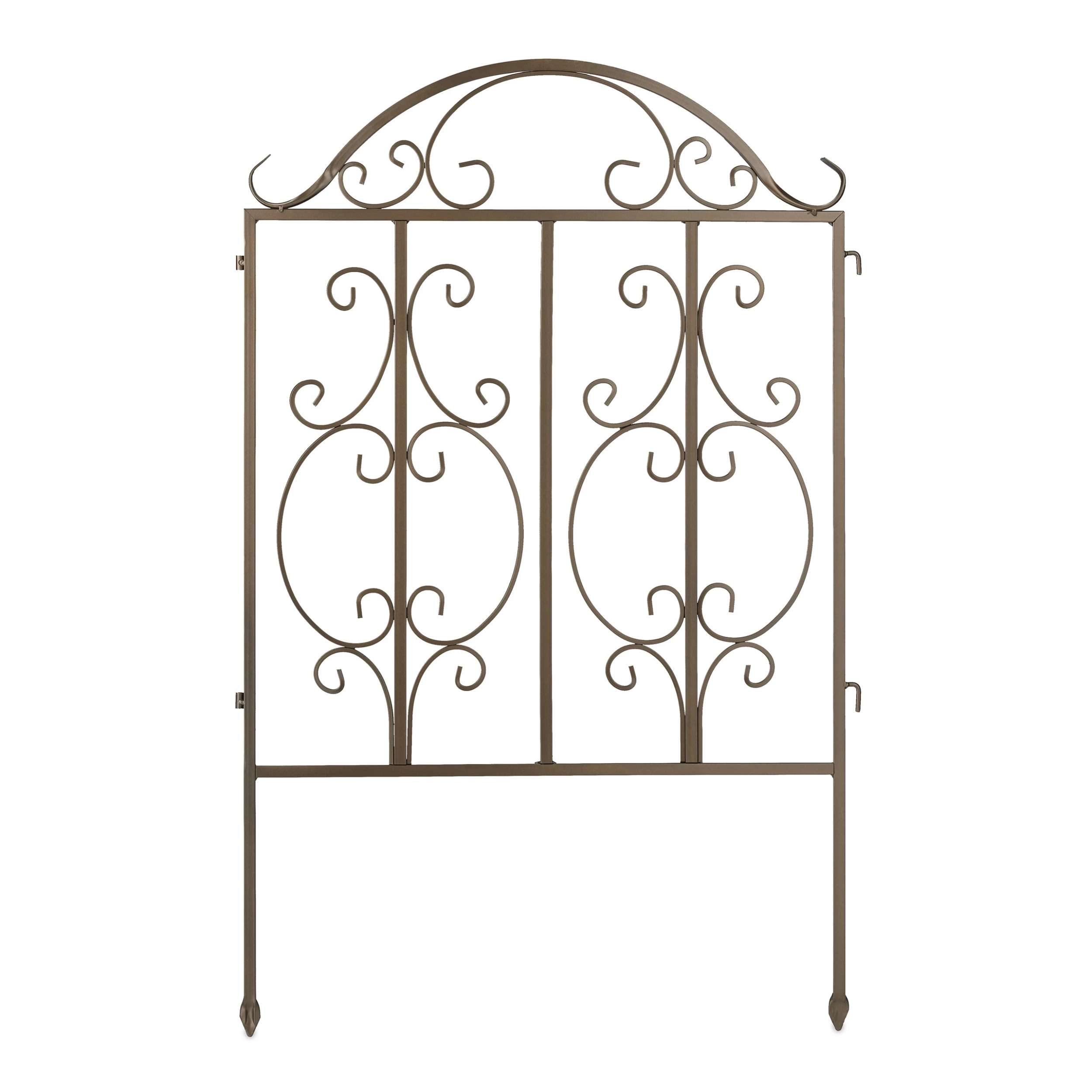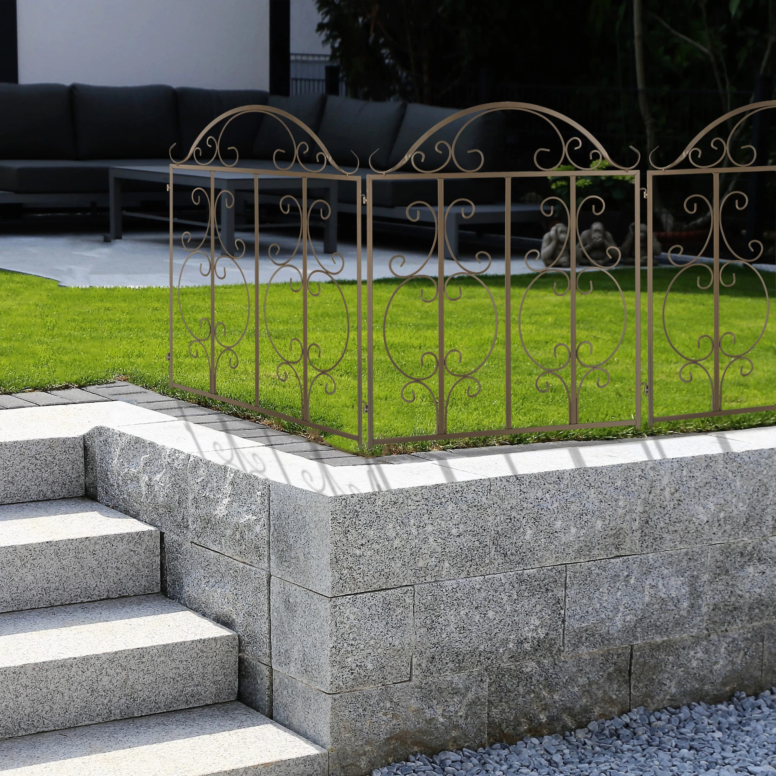 Verleihen Sie Ihrem Garten den letzten Schliff mit diesem verzierten Gartenzaun Set aus Stahl. Das verzierte Stecksystem besteht aus drei gleichen Teilen. Die Segmente sind über ein Steckscharnier miteinander verbindbar und können so auch mit weiteren Zaunelementen erweitert werden. Der Steckzaun in Bronze besticht mit seinen geschwungenen Ornamenten und verziert Ihren Garten auf elegante Art. Zur Installation stecken Sie die Gartentor-Elemente einfach direkt in den Boden.