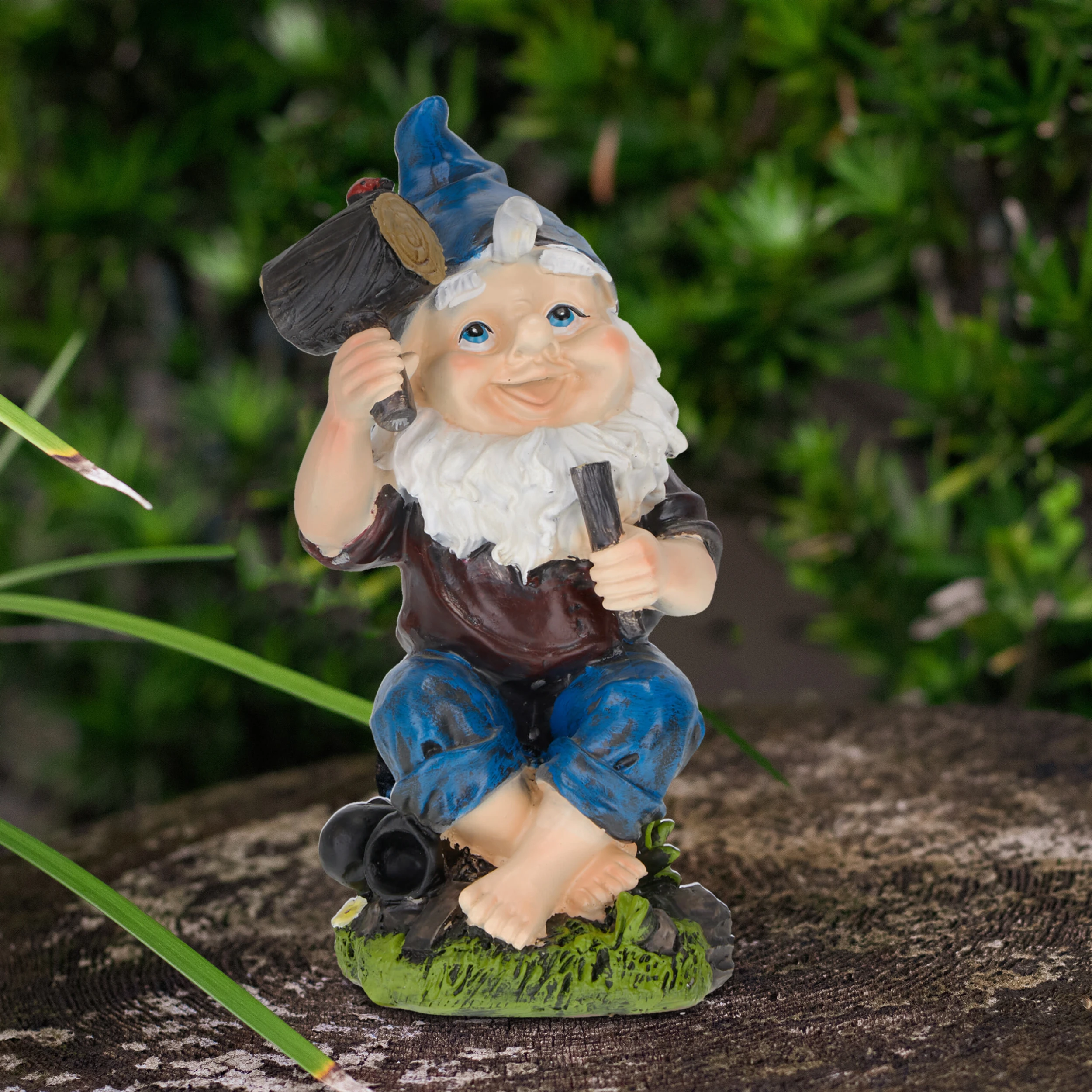 Hol Dir den Klassiker des Kleingartens in Dein Beet: Der drollige Gartenzwerg mit Zipfelmütze und weißem, wallendem Bart. Dieser kleine Wichtel arbeitet fleißig mit Hammer und Meißel und bietet Deinen Besuchern dabei einen charmanten Anblick. Die vielen liebevollen Details sind aus dem wetterfesten Kunstharz Polyresin gefertigt und werden von intensiven und zugleich UV-beständigen Farben zum Leben erweckt. Der Gartengnom versprüht auch auf Balkon oder Terrasse Witz und Charme.