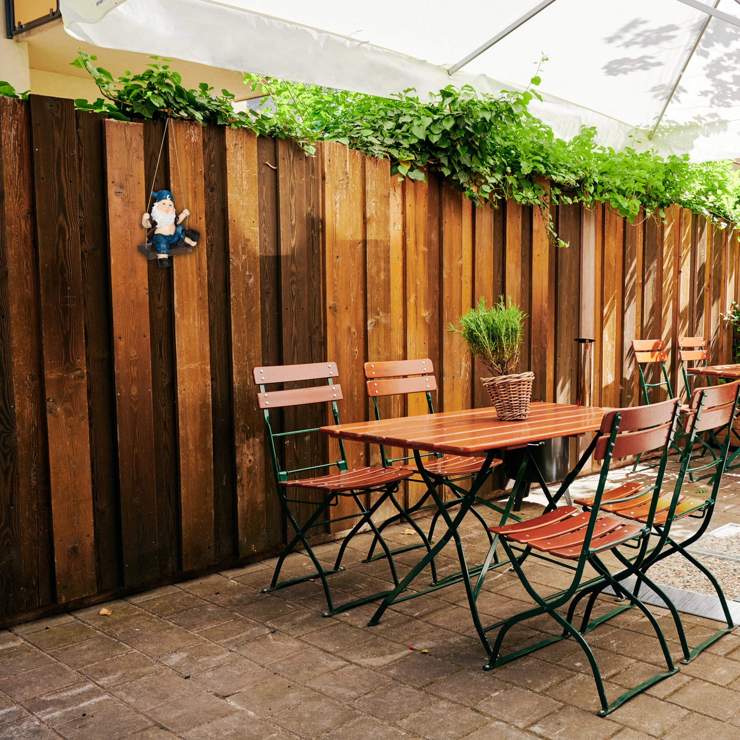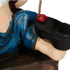 Hol Dir den Klassiker des Kleingartens in Dein Beet: Der drollige Gartenzwerg mit Zipfelmütze und weißem, wallendem Bart. Dieser kleine Wichtel sitzt auf seiner Schaukel und bietet am Baum oder Zaun aufgehängt Deinen Besuchern einen charmanten Anblick. Die vielen liebevollen Details sind aus dem wetterfesten Kunstharz Polyresin gefertigt und werden von intensiven und zugleich UV-beständigen Farben zum Leben erweckt. Der Gartengnom versprüht auch auf Balkon oder Terrasse Witz und Charme.