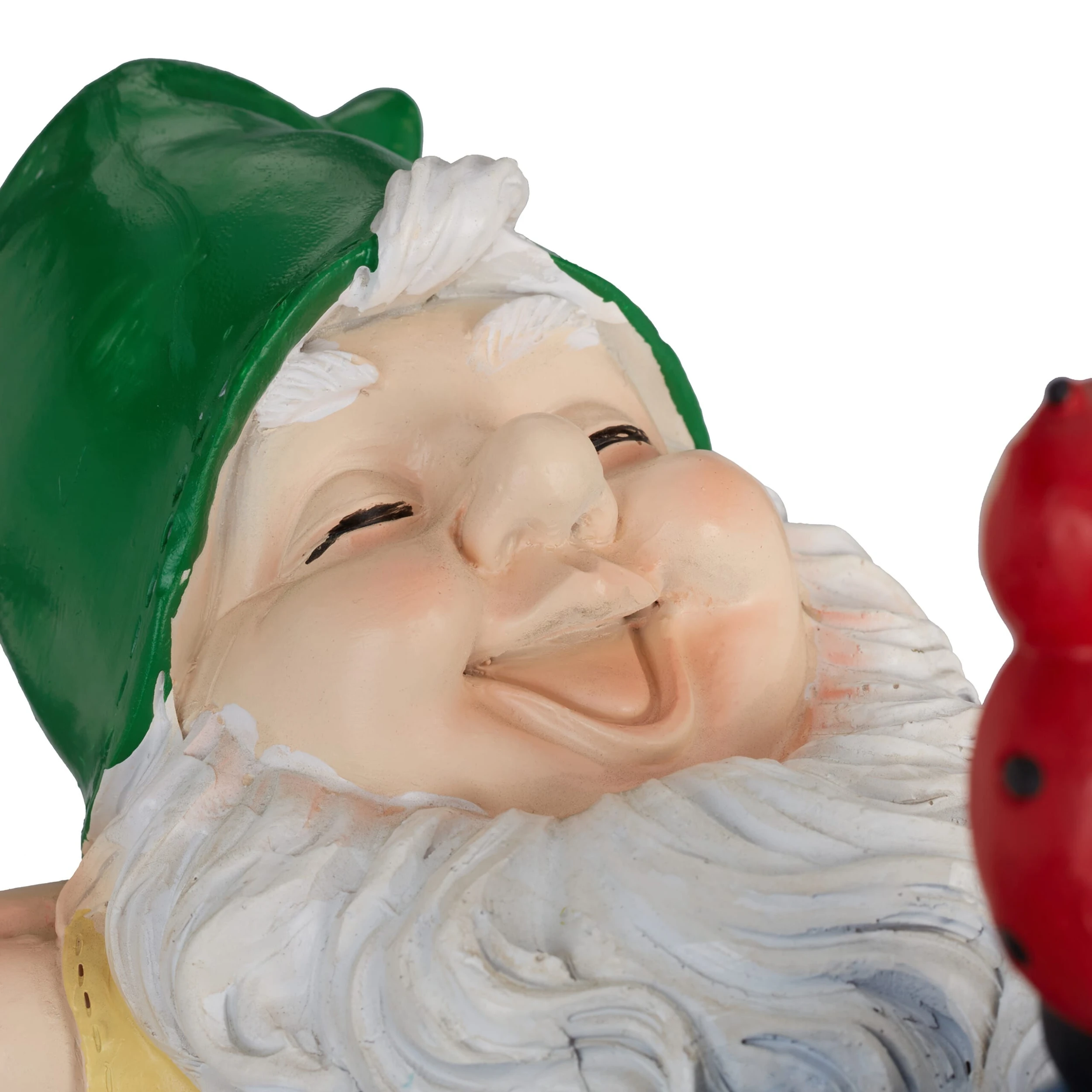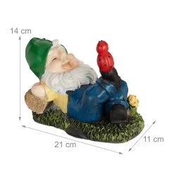 Er ist Klassiker und Blickfang in jedem Garten und kommt einfach nicht aus der Mode – der Gartenzwerg! Platziere den drolligen Wichtel im Beet, auf Balkon oder Terrasse und setze ihn gekonnt in Szene. Der liegende Gnom mit süßem Käferchen auf dem Fuß ist mit den typischen Merkmalen wie Zipfelmütze und Rauschebart versehen und erlaubt sich nach getaner Arbeit sein wohlverdientes Nickerchen. Gerne kannst Du die Dekofigur ganzjährig draußen stehen lassen, da sie aus wetterfestem Kunststein besteht.