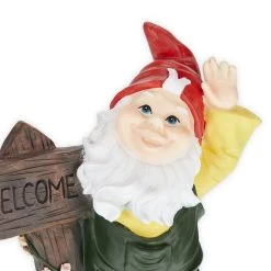 Er ist Klassiker und Blickfang in jedem Garten und kommt einfach nicht aus der Mode – der Gartenzwerg! Platziere den fröhlichen Wichtel im Beet, auf der Terrasse oder vor der Haustür und setze ihn gekonnt in Szene. Der freundlich winkende Gnom ist mit den typischen Merkmalen wie Zipfelmütze und Rauschebart versehen und wird mit seinem Welcome-Schild Deinen Gästen einen warmen Empfang bereiten. Gerne kannst Du die Dekofigur ganzjährig draußen stehen lassen, da sie aus frostfestem Kunststein ist.