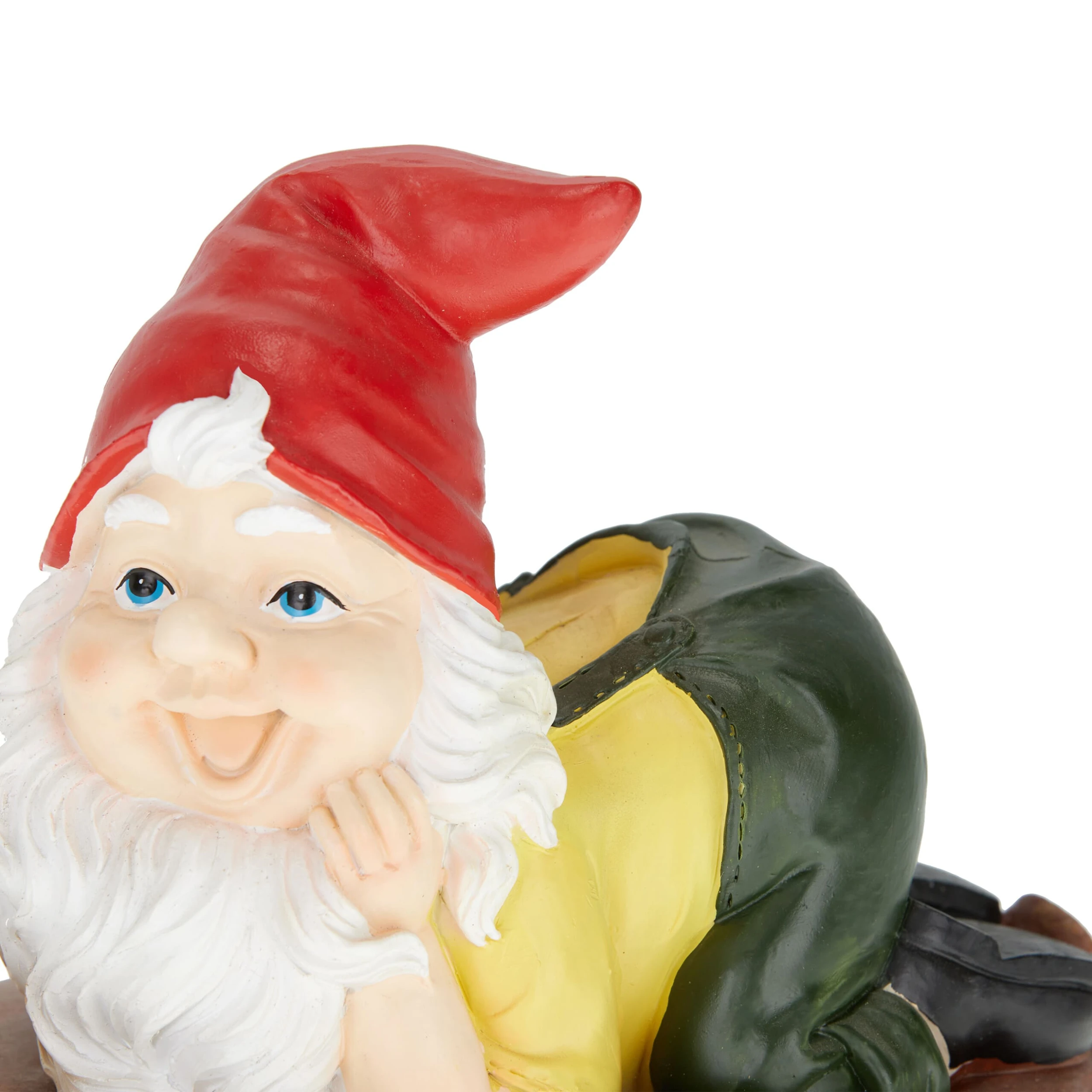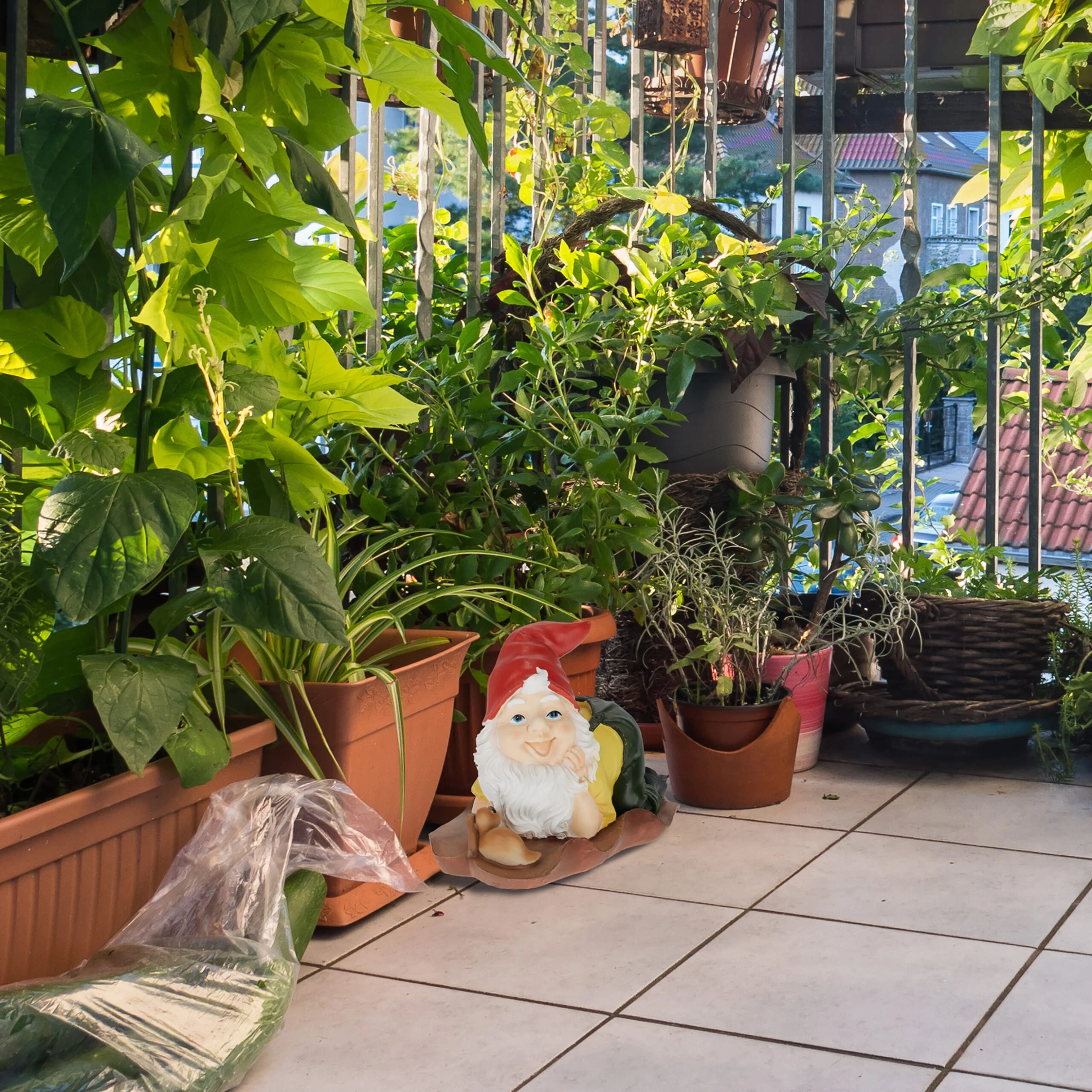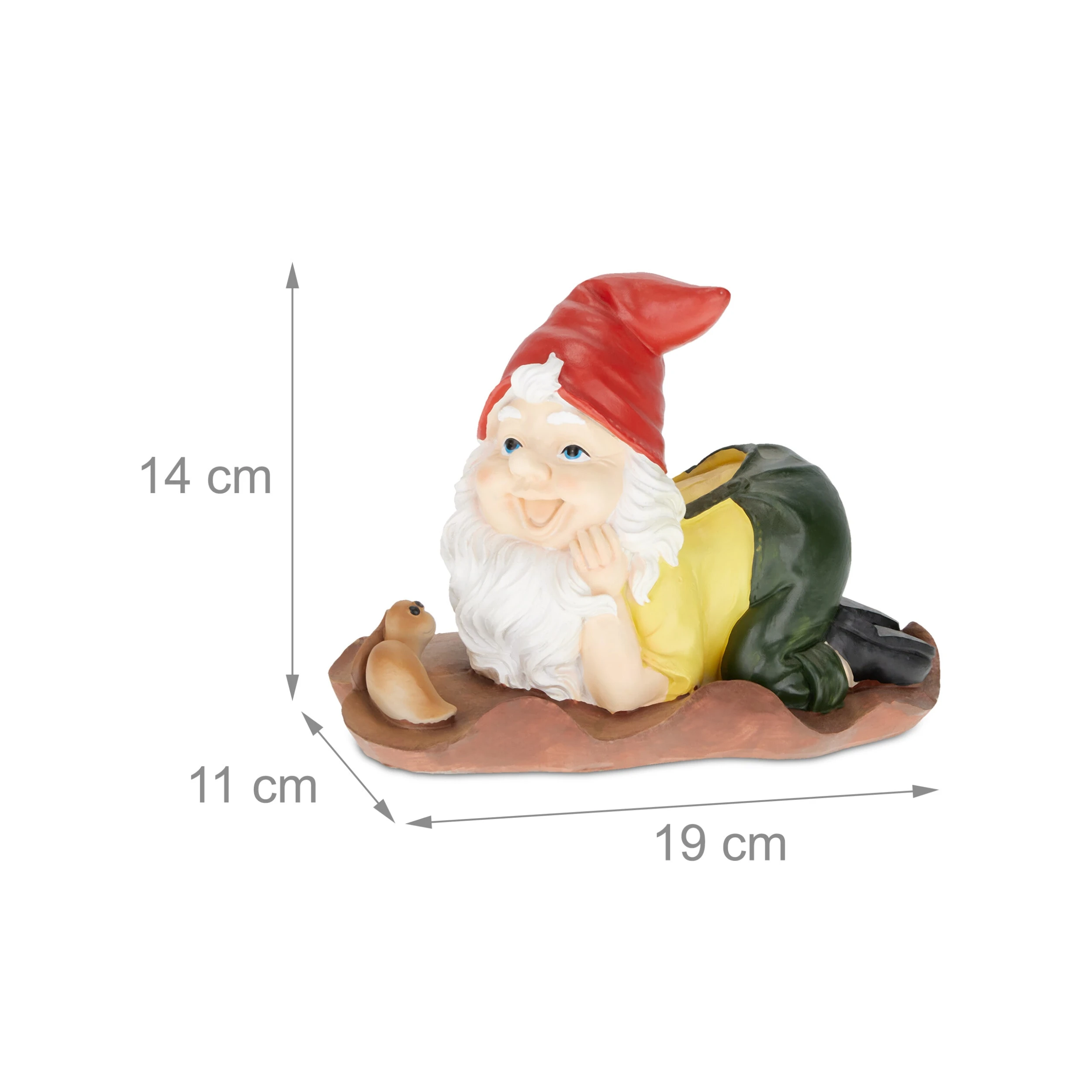 Er ist Klassiker und Blickfang in jedem Garten und kommt einfach nicht aus der Mode – der Gartenzwerg! Platziere den drolligen Wichtel im Beet, auf Balkon oder Terrasse und setze ihn gekonnt in Szene. Der detailreich gestaltete Gnom ist mit den typischen Merkmalen wie Zipfelmütze und Rauschebart versehen. Fröhlich schaut er gen Himmel, während er vor einem neckischen Würmchen mit süßen Knopfaugen kniet. Die Dekofigur aus wetterfestem Kunststein kannst Du auch ganzjährig draußen stehen lassen.