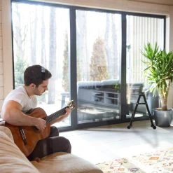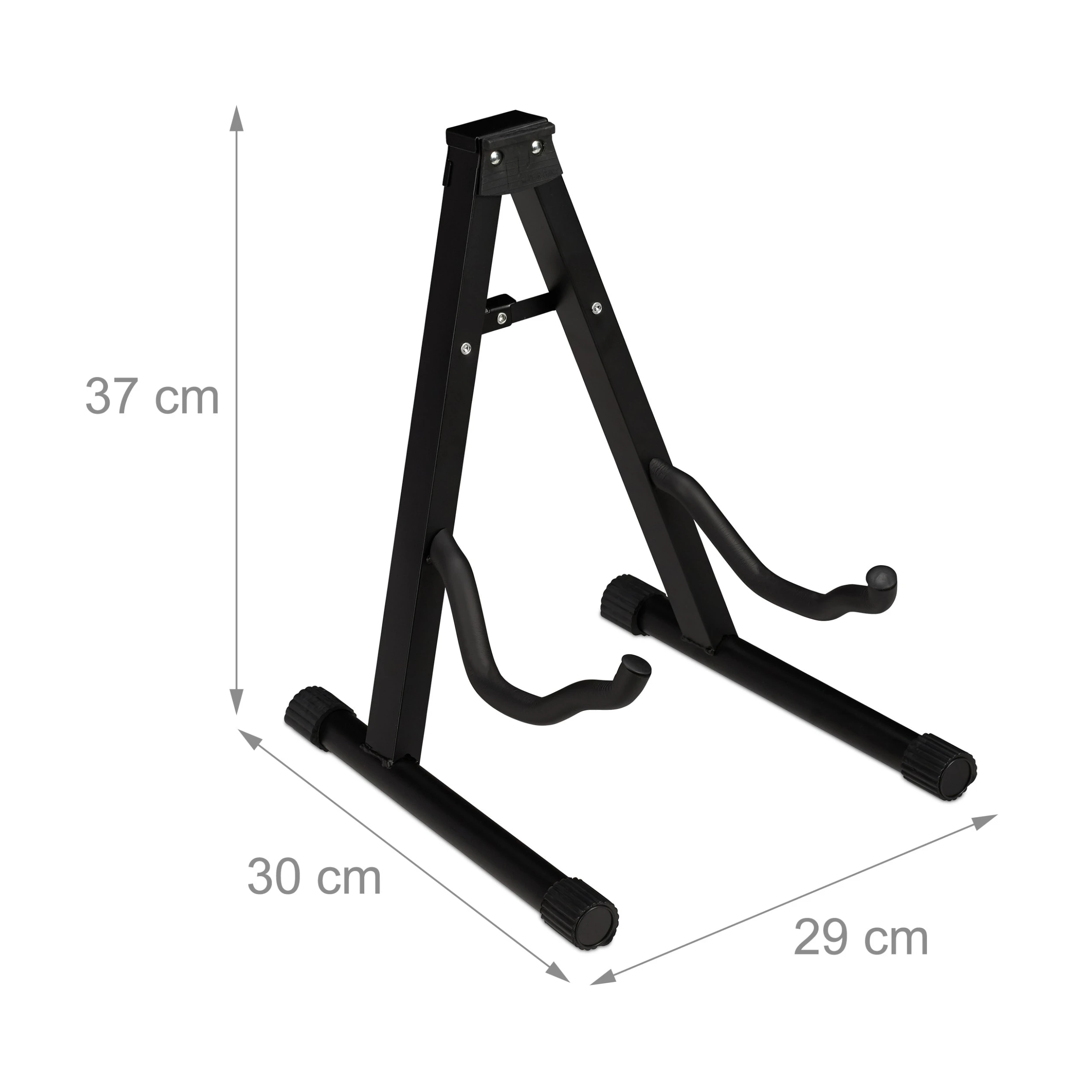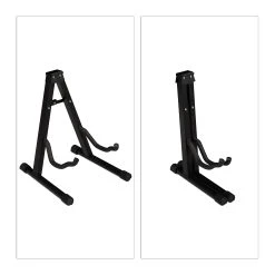 Dieser Gitarrenständer ist ein nützliches Utensil für alle Gitarrenspieler. Mit dem Gitarrenhalter für Western-, E- und Bassgitarren setzen Sie Ihr Instrument in Szene und bewahren es gleichzeitig geschützt auf. Die Arme mit Schaumstoffbezug verhindern Kratzer, die gummierten Füße sorgen für die nötige Stabilität. Für einen einfachen Transport kann der Bassgitarrenständer zusammengefaltet werden. Ob Zuhause, im Proberaum oder auf der Bühne – das Gitarrenstativ ist ein praktischer Begleiter.