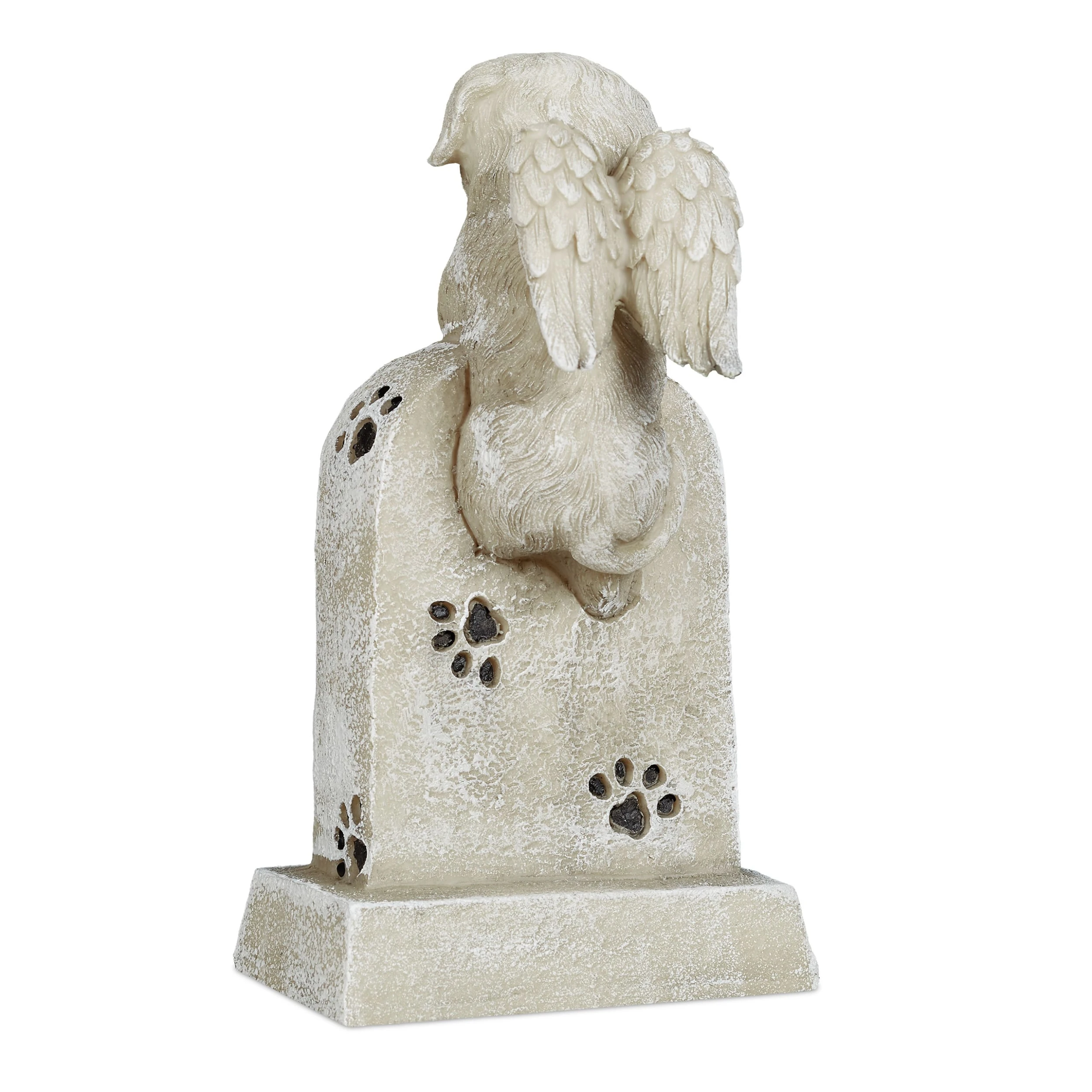 Der Schmerz sitzt tief, wenn ein geliebtes Tier plötzlich aus dem Leben gerissen wird oder ein jahrelanger Begleiter seine letzte Reise antritt. Das Haustier gehörte fest zur Familie und soll richtig gewürdigt werden. Ein schöner Ort für das Grab, ob im eigenen Garten oder auf einem Tierfriedhof, benötigt ein kleines Denkmal, das die Stelle markiert. Bei diesem Andenken mit süßem Hundeengel auf dem Grabstein treffen Sie die richtige Wahl. Ein Spruch, Kreuz und Pfotenabdrücke runden die Steindeko ab.