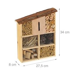 Mit der Insekten Nisthilfe tragen Sie aktiv zum Artenschutz bei. Käfern, Bienen, Florfliegen und anderen Insekten dient der Insektennistkasten als Überwinterungshilfe. In den Kammern des Wildbienenhotels mit unterschiedlichen Befüllungsmaterialien können sich die Insekten richtig wohlfühlen. Hängen Sie das Marienkäferhaus in Ihren Garten oder stellen Sie es auf Ihren Balkon und beobachten das faszinierende Treiben. Ein spannendes Erlebnis für Kinder und Erwachsene!