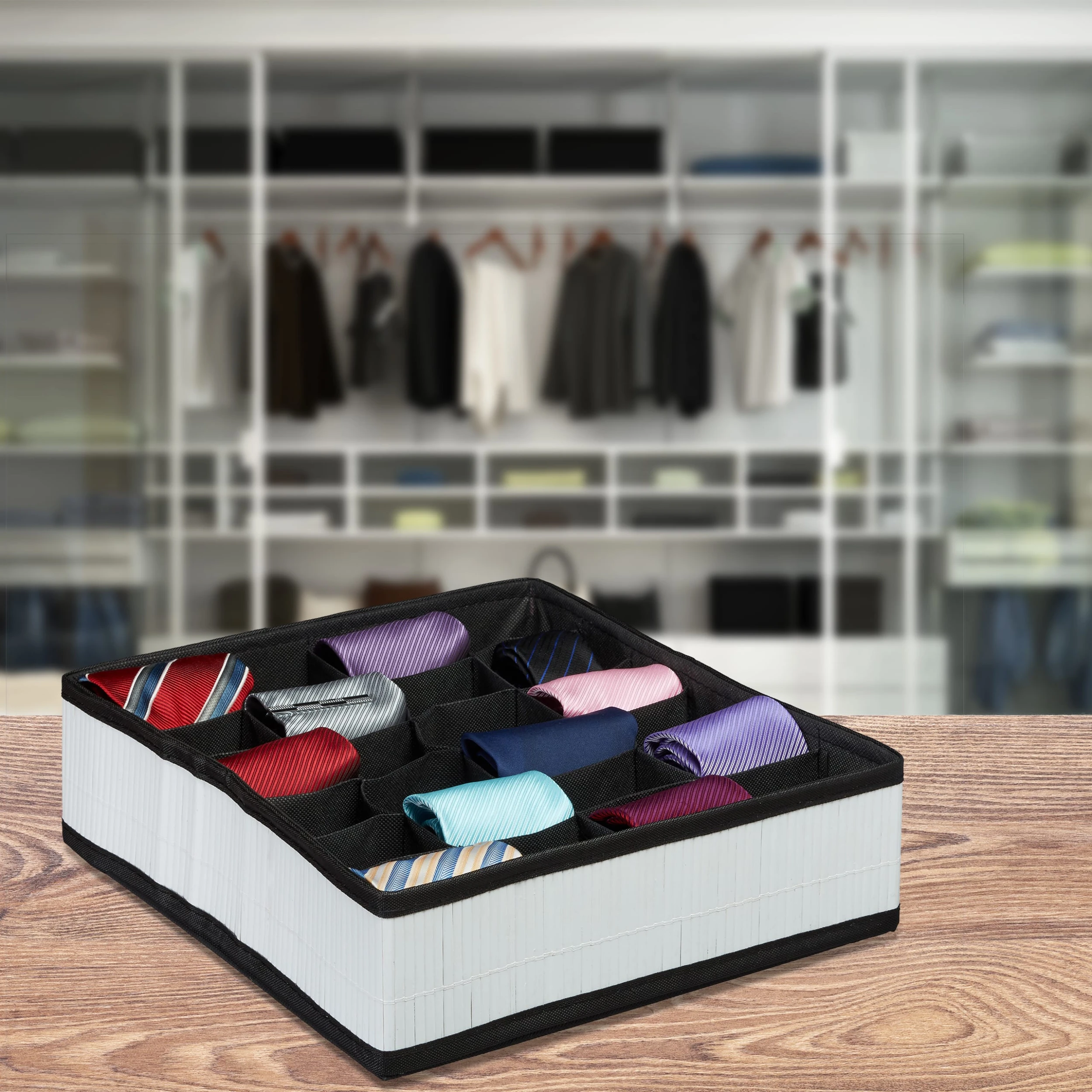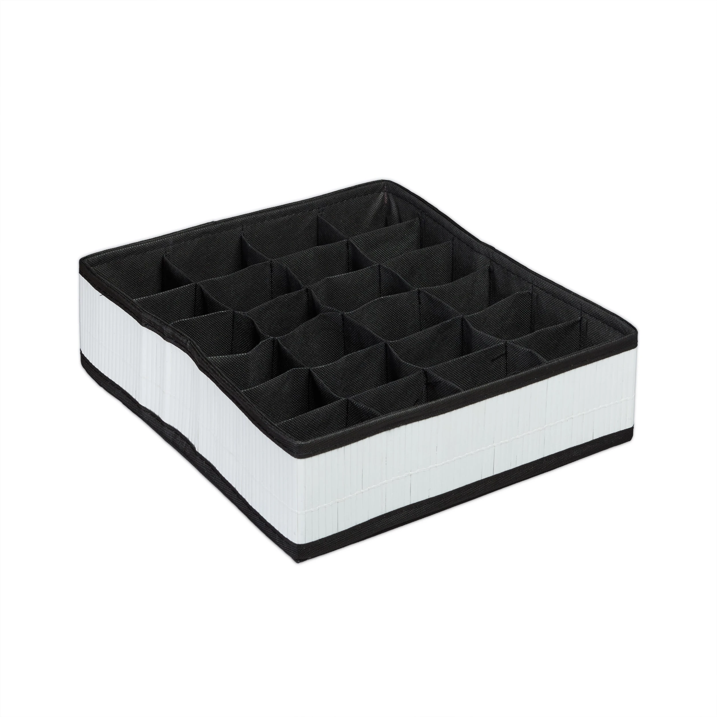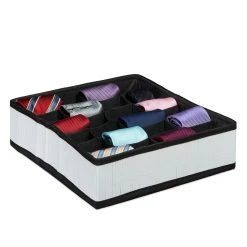 Oft ist es schwierig kleine Kleidungsstücke wie Krawatten, Socken oder Schals effektiv unterzubringen. Der praktische Schubladenorganizer hilft Ihnen nicht nur als Krawattenbox Ordnung ins Chaos Ihrer Schrankschublade zu bringen. Mit 24 Zellen hat der schlichte Organizer genügend Platz für eine Vielzahl von kleinen Accessoires. Bei Bedarf kann er über einen Reißverschluss zusammengelegt werden. Damit eignet er sich auch für unterwegs auf Reisen!