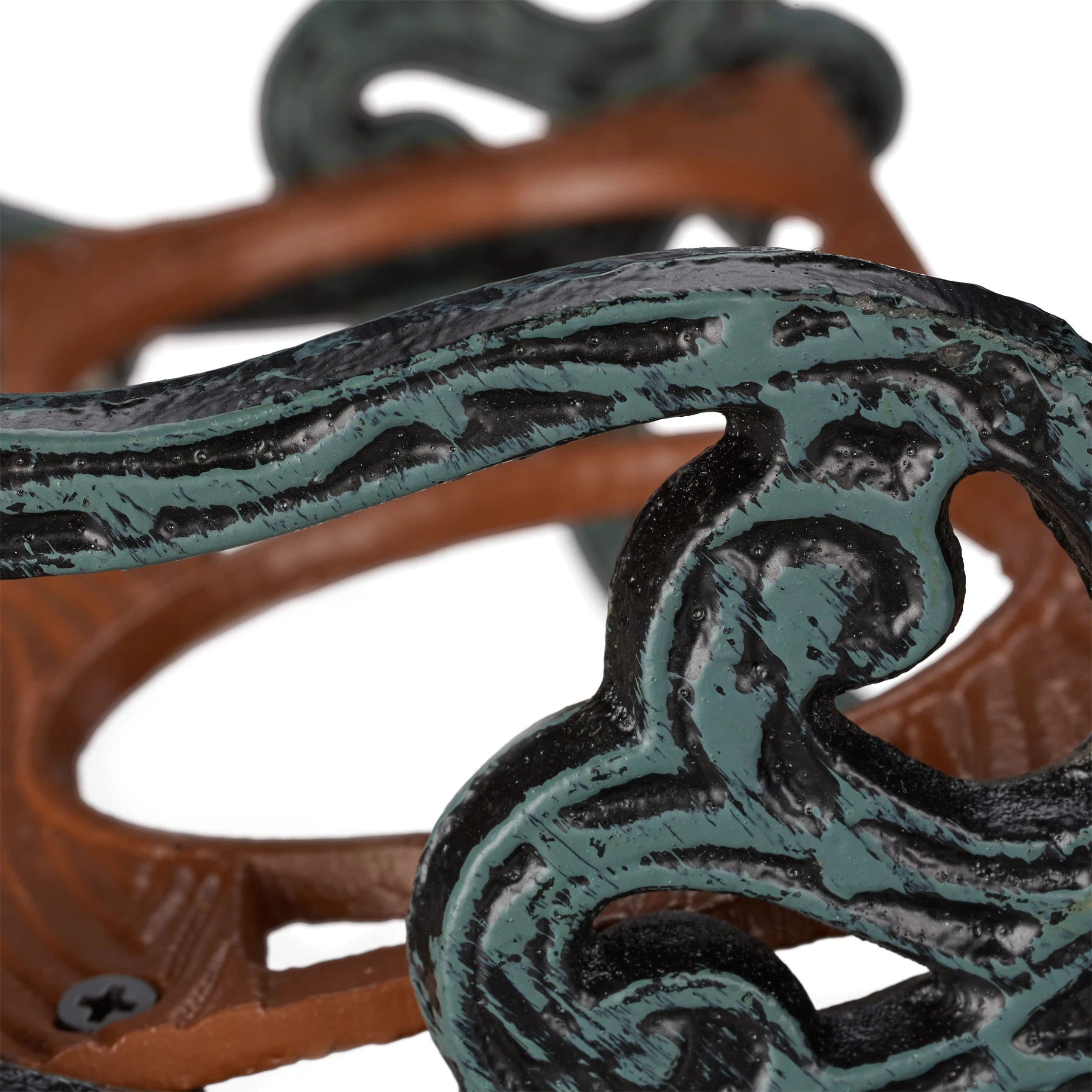 Drapieren Sie die Mini Blumenbank neben der Haustür, auf Terrasse und Balkon oder auf der Wiese und bringen Sie kleine Pflanztöpfe so besonders schön zur Geltung. Je nach Größe bietet der Blumenständer Platz für 2 oder 3 Töpfe, die einfach in den runden Aussparungen der Bank platziert werden. Ob kleine Kräutertöpfe, bunt blühende Blumen oder moderne Grünpflanzen – die geschwungenen Armlehnen aus Gusseisen unterstreichen den natürlichen Charme jeder Pflanze und lassen sie zu einem dekorativen Blickfang in Ihrem Garten werden.
