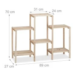Das Pflanzenregal ist vollständig aus natürlichem Tannenholz gefertigt. Es eignet sich zur Indoor-Nutzung im Wohnzimmer, Küche, Flur oder Wintergarten. Das Holzregal kommt besonders zur Geltung, wenn es an einer Wand steht.