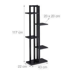 Das große Pflanzenregal schafft den nötigen Platz, um Deine geliebten Zimmerpflanzen dekorativ zu präsentieren. Ob Grünpflanze, Blumenstrauß, Trockenblumen oder Dekoartikel, auf den 5 geräumigen Stufen kommen Deine Arrangements bestens zur Geltung. Mit ihrem Materialmix aus schwarzem Stahl und Ablagen in Holzoptik überzeugt die Pflanzentreppe im Wohn- und Schlafzimmer. Gestalte Deine persönliche, kleine Pflanzenecke im Wintergarten oder nutze die Blumentreppe als Kräuterregal in der Küche.