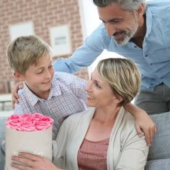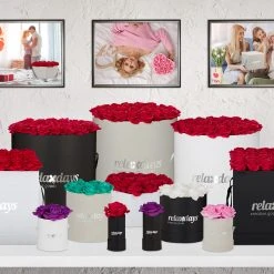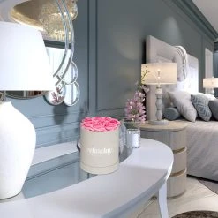Die elegante Flowerbox ist die moderne Form des klassischen Rosenstraußes, mit der Sie jeden Tag den Anblick hübscher Blüten genießen können. Harmonisch kombiniert mit der grauen Geschenkbox sind die 8 täuschend echten Stoffrosen ein stilvoller Eyecatcher in Ihrem Zuhause. Ob als Hochzeits- oder Tischdeko, als romantische Geste zum Valentinstag oder exklusives Geschenk zum Geburtstag – das in liebevoller Handarbeit gefertigte Blumenbouquet bietet Ihnen und Ihren Liebsten jahrelange Freude.