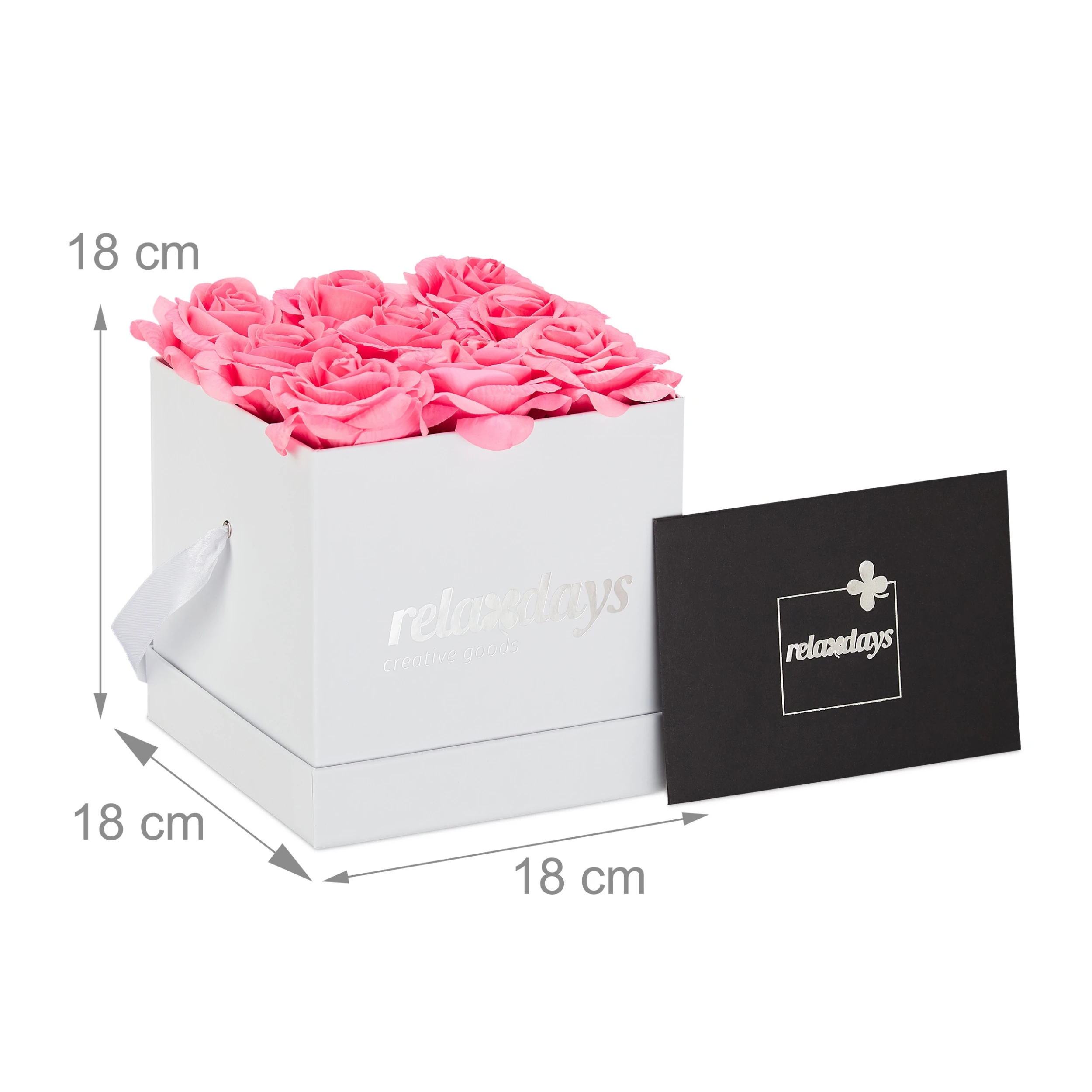 Die elegante Flowerbox ist die moderne Form des klassischen Rosenstraußes, mit der Sie jeden Tag den Anblick hübscher Blüten genießen können. Harmonisch kombiniert mit der weißen Geschenkbox sind die 9 täuschend echten Stoffrosen ein stilvoller Eyecatcher in Ihrem Zuhause. Ob als Hochzeits- oder Tischdeko, als romantische Geste zum Valentinstag oder exklusives Geschenk zum Geburtstag – das in liebevoller Handarbeit gefertigte Blumenbouquet bietet Ihnen und Ihren Liebsten jahrelange Freude.