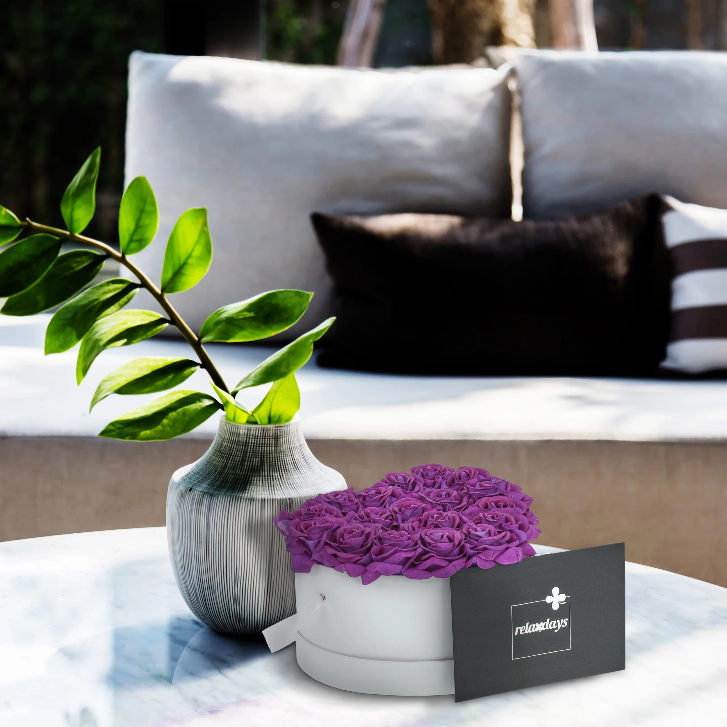 Die elegante Flowerbox ist die moderne Form des klassischen Rosenstraußes, mit der Du jeden Tag den Anblick hübscher Blüten genießen kannst. Harmonisch kombiniert mit der weißen Geschenkbox sind die 18 täuschend echten Stoffrosen ein stilvoller Eyecatcher in Deinem Zuhause. Ob als Hochzeits- oder Tischdeko, als romantische Geste zum Valentinstag oder exklusives Geschenk zum Geburtstag, das in liebevoller Handarbeit gefertigte Blumenbouquet bietet Dir und Deinen Liebsten jahrelange Freude.