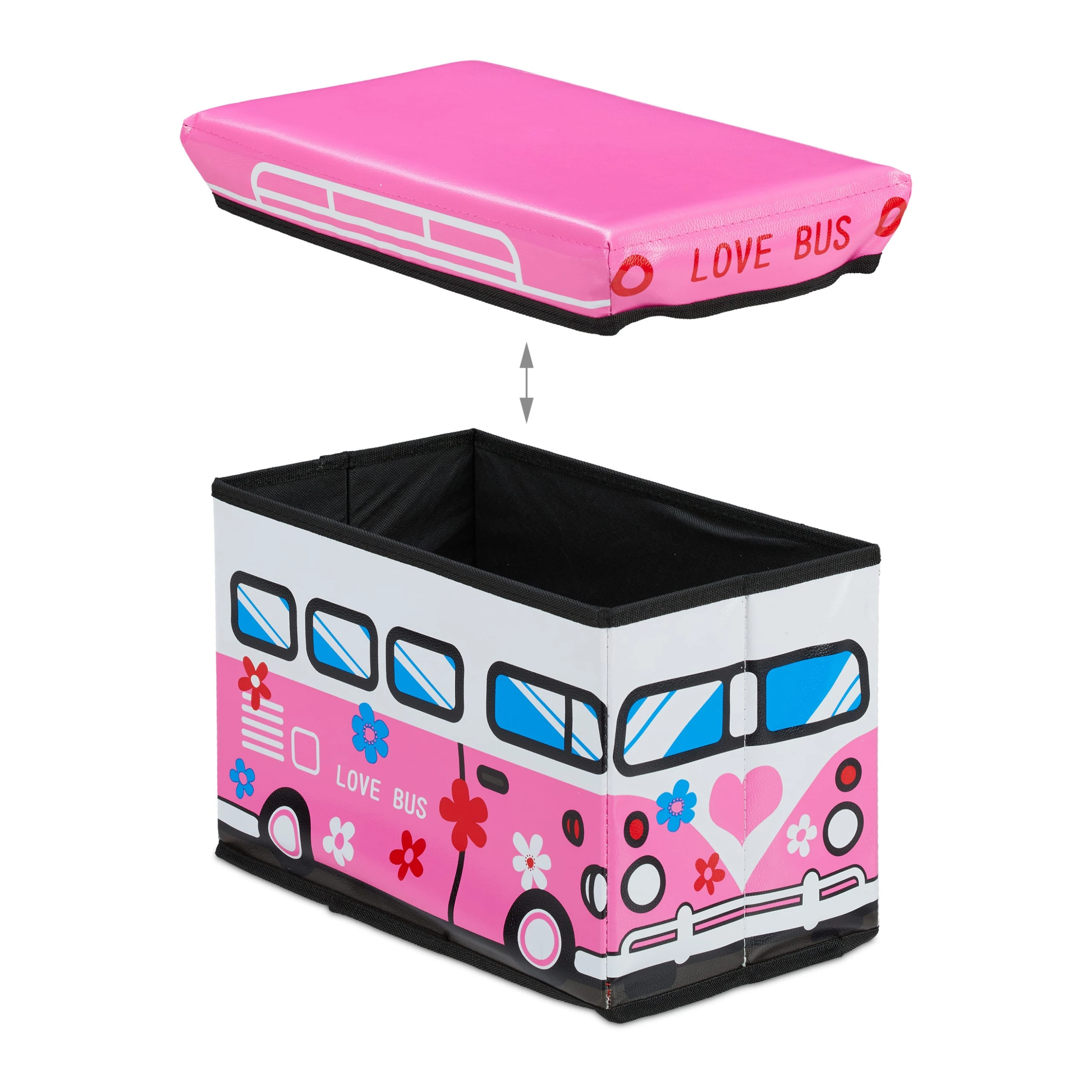 Befüllen Sie den großzügigen Stauraum der faltbaren Spielzeugbox mit Bällen, Bauklötzen, Kuscheltieren, Kinderkleidung uvm. Im Handumdrehen ist die typische Unordnung eines Kinderzimmers beseitigt. Außerdem können Sie und Ihr Kind die Spielzeugtruhe als Sitzhocker nutzen. Falls doch einmal Platzbedarf besteht, ist die Sitzbox schnell zusammengefaltet und verstaut. Die Sitztruhe fügt sich durch ihre kindgerechten Motive gut in jedes Kinderzimmer ein und sorgt für Freude beim Aufräumen.