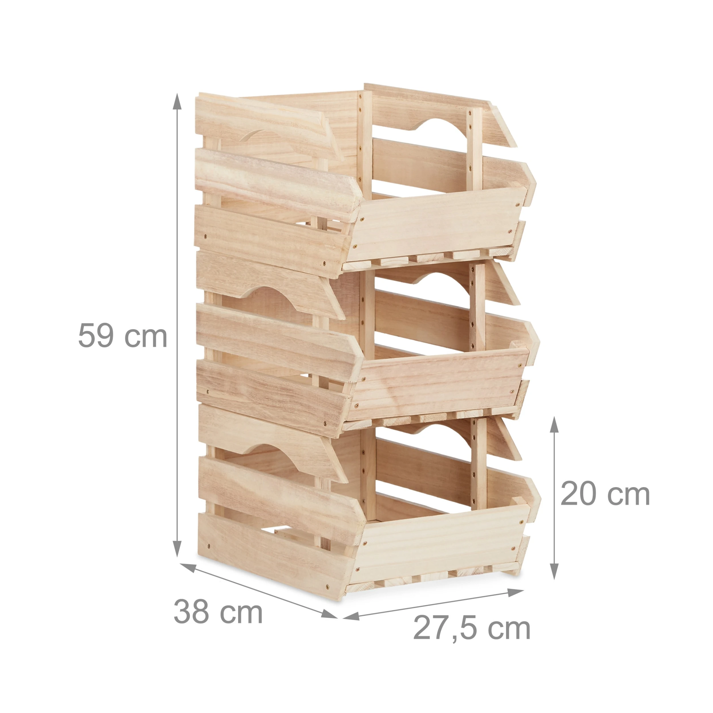 Die 3 Holzkisten spielen bestens zusammen. Sie sind genau aufeinander abgestimmt und lassen sich gut ineinander stapeln. Die Stapelkisten sind aus Paulowniaholz gefertigt. Das Naturholz punktet durch sein geringes Gewicht, ist aber auch sehr stabil. Mit den Stapelboxen schaffen Sie schnell neuen Stauraum in Küche oder Keller. Die Holzboxen sind so designt, dass Sie sich blitzschnell einen Überblick über die abgelegten Gegenstände verschaffen.