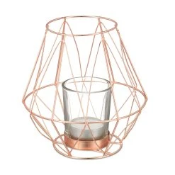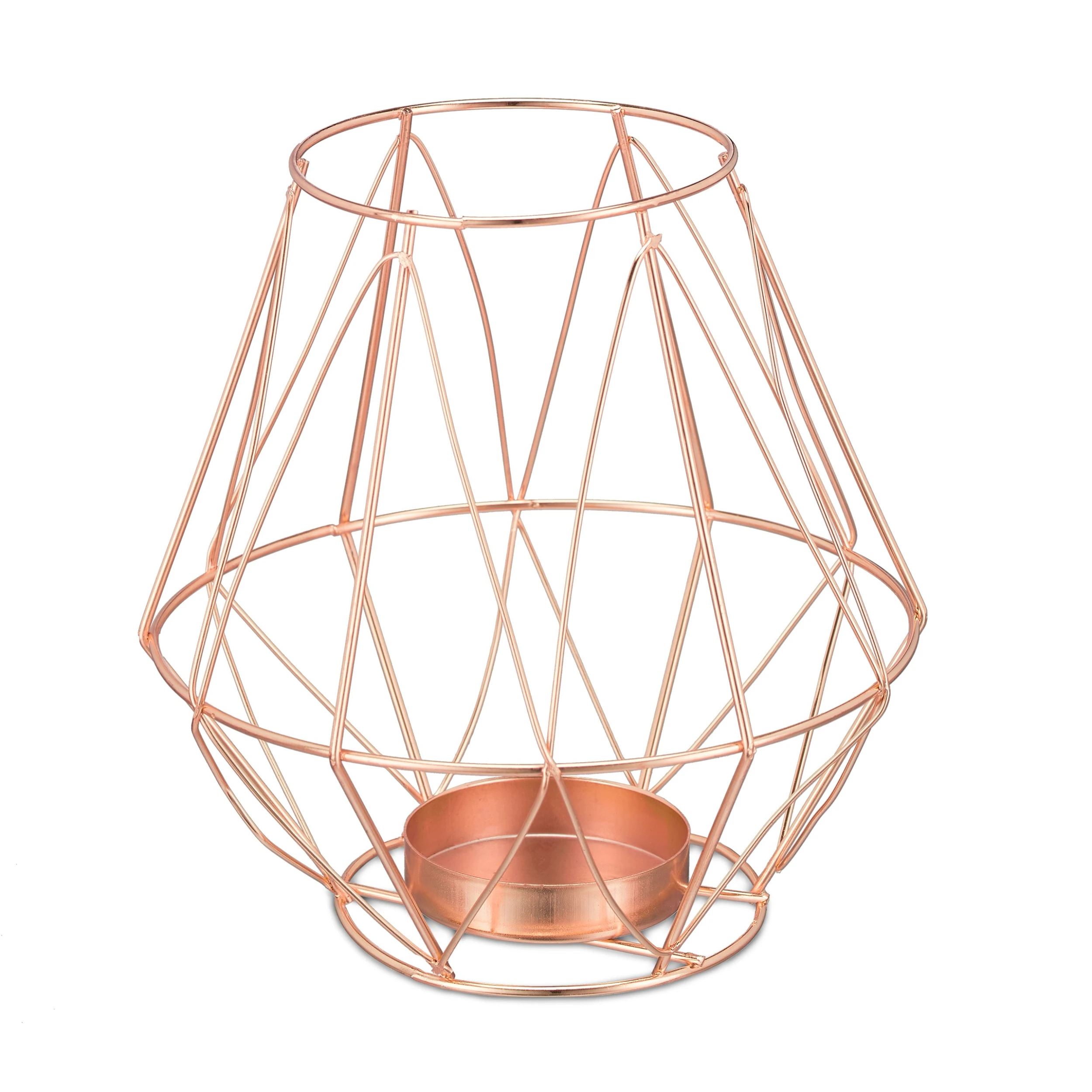 Mit diesem Kerzenhalter aus Metall zauberst Du im Handumdrehen eine gemütliche Atmosphäre in Deinem Zuhause. Platziere den Teelichtständer auf der Fensterbank, einem Beistelltisch oder einer Kommode, wo er mit seinem geometrischen Gitterdesign dekorative Akzente setzt. Auch als Tischdekoration bei Geburtstagen oder Hochzeiten macht der Teelichthalter eine gute Figur. Der Kerzenständer eignet sich für Teelichter und Votivkerzen.
