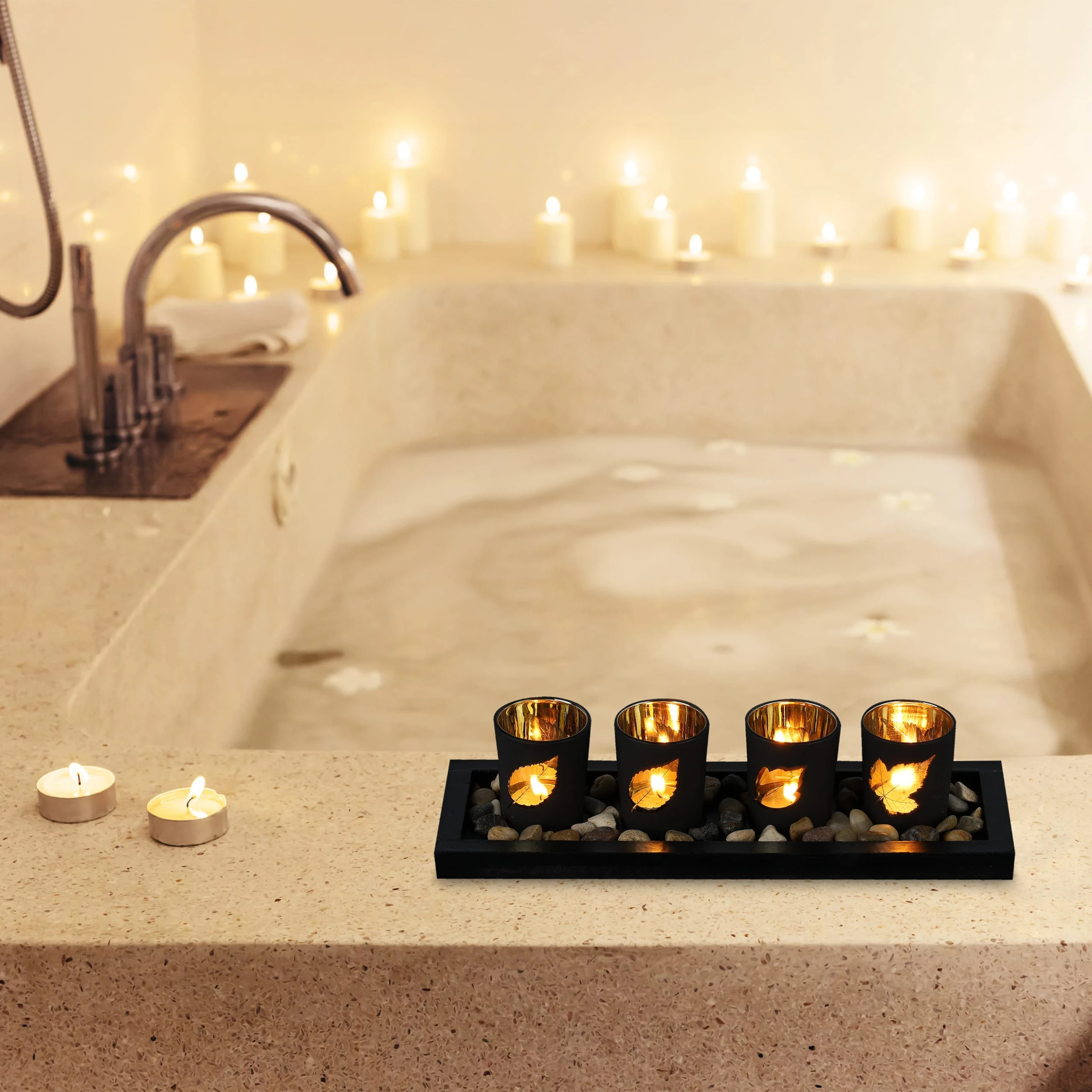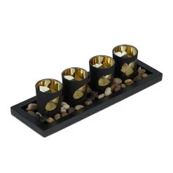 – Teelichthalterset inklusive 4 Teelichthaltern, länglicher Dekoschale und Steinen