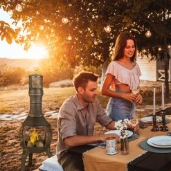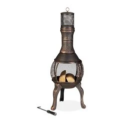 Was gibt es Schöneres, als sich an einem Sommerabend mit Familie oder Freunden um ein prasselndes Feuer zu setzen? Dieser Gartenofen im Antik-Design mit hohem Kaminrohr schenkt nicht nur Wärme, sondern hält Deine Umgebung auch rauchfrei. Der Feuerrost gewährleistet eine gute Luftzirkulation. Das Funkenschutzgitter hemmt gefährlichen Funkenflug. Zum Nachlegen von Holz lässt sich die Tür mit dem Schürhaken auf- und zuschieben. Der Terrassenkamin ist der ideale Wärmespender für Partys im Freien.