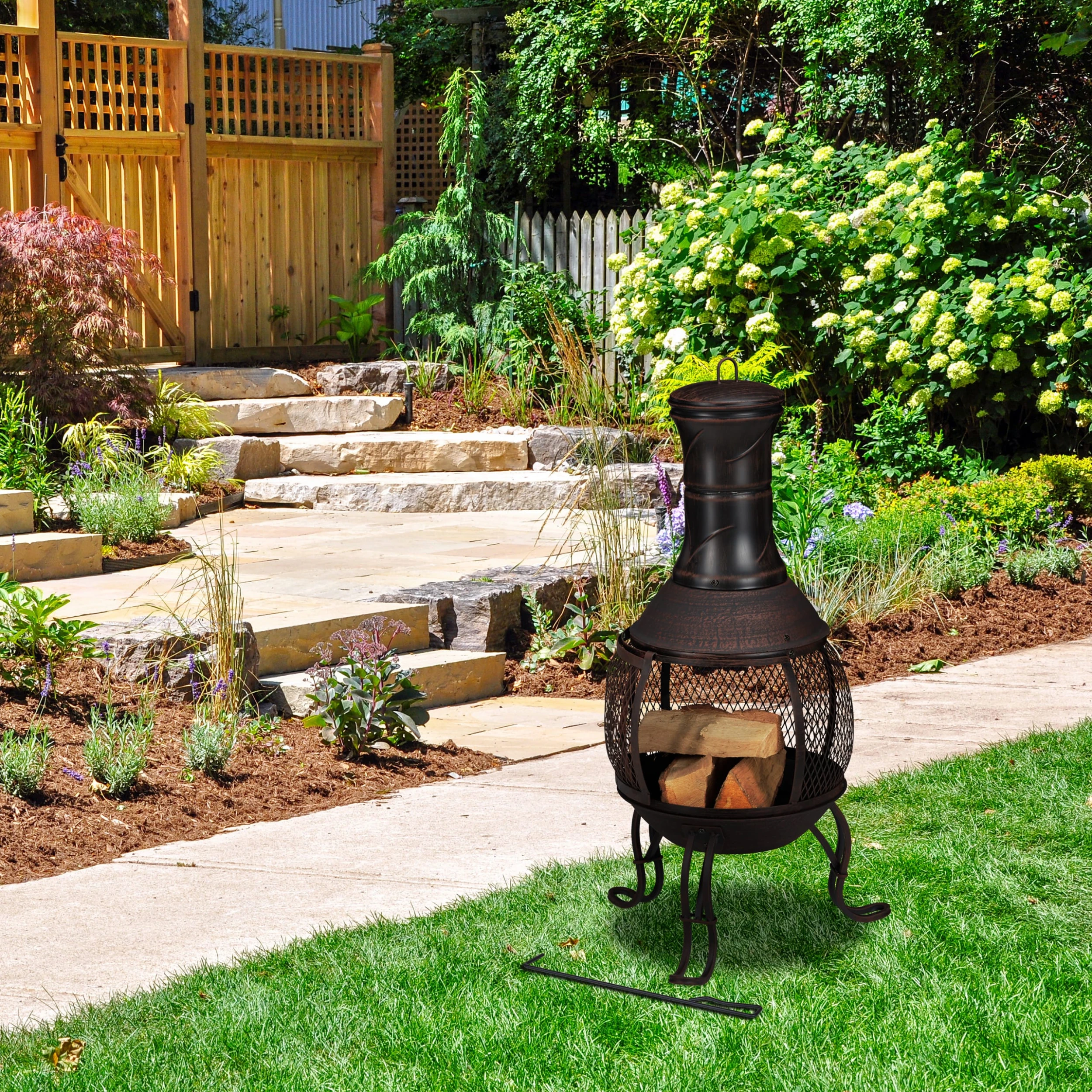 – Holzrost zur einfachen Entfachung des Feuers- Kaminrohr mit Deckel zum Schutz vor Regen