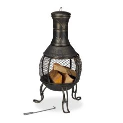 – Holzrost zur einfachen Entfachung des Feuers- Kaminrohr mit Deckel zum Schutz vor Regen