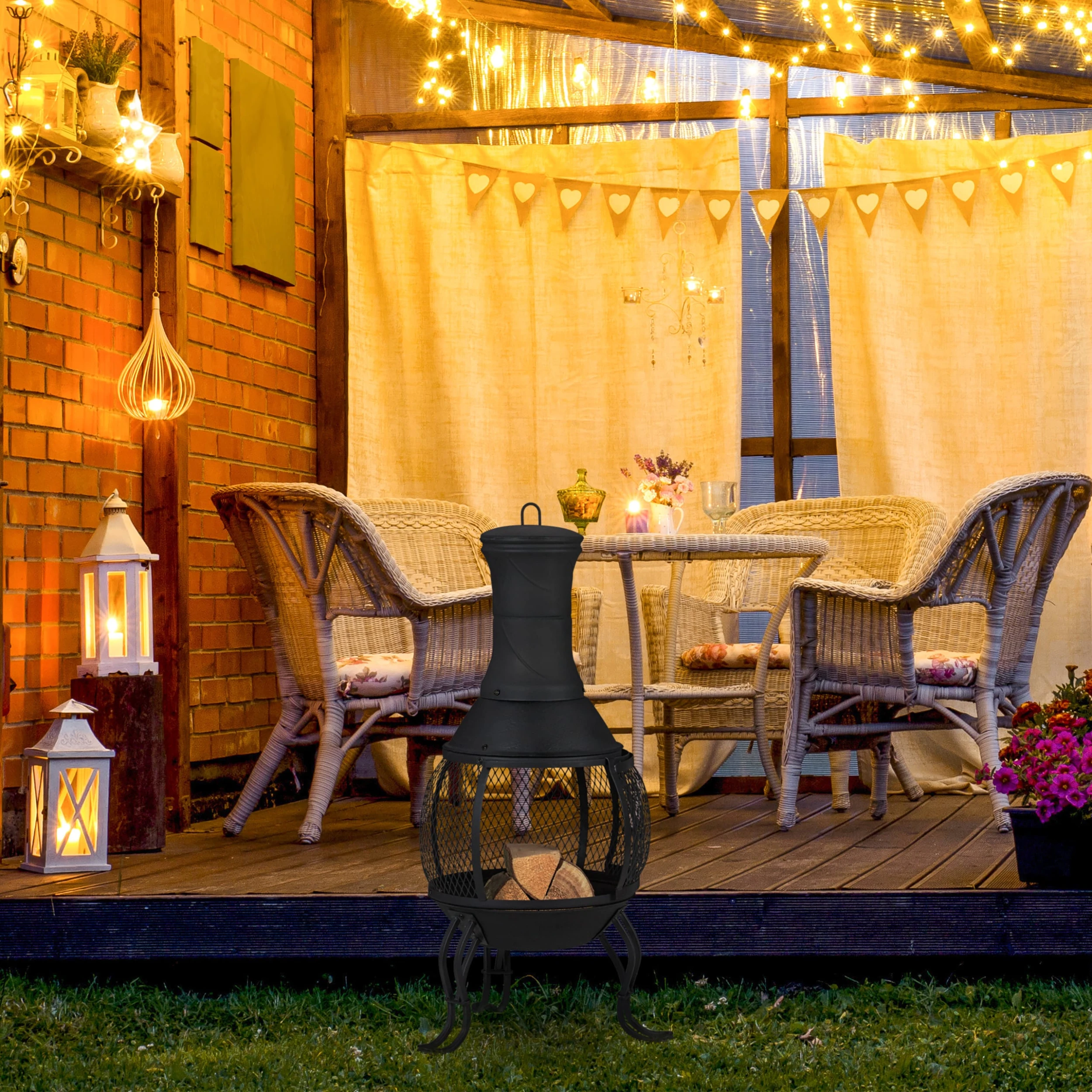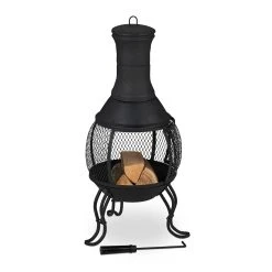 – Robuster Chiminea in Schwarz mit dekorativen Details