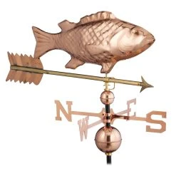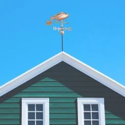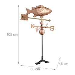 Mit der dekorativen Windfahne in Form eines Fischs holst Du Dir Deinen ganz eigenen Windrichtungsanzeiger auf das Dach von Haus oder Gartenpavillon. Der Wetterhahn wird entsprechend der 4 Himmelsrichtungen ausgerichtet und kann dank des verstellbaren Fußes auf flachen oder spitzen Dächern montiert werden. Durch auftretenden Wind bewegt sich der Pfeil und zeigt so die korrekte Windrichtung an. Mit ihrem Kupfer-Design ist die Deko-Wetterfahne auch optisch ein toller Blickfang für den Garten.