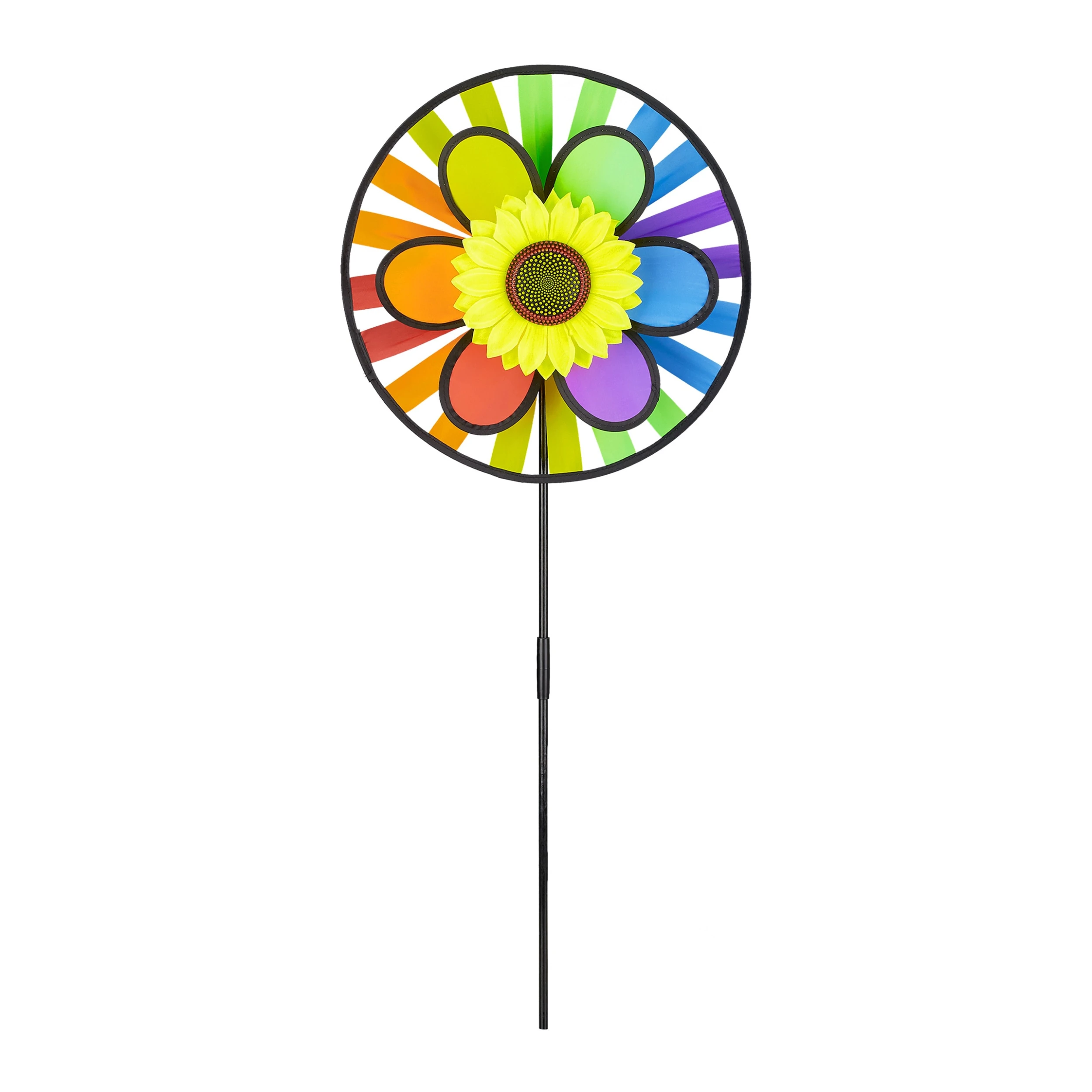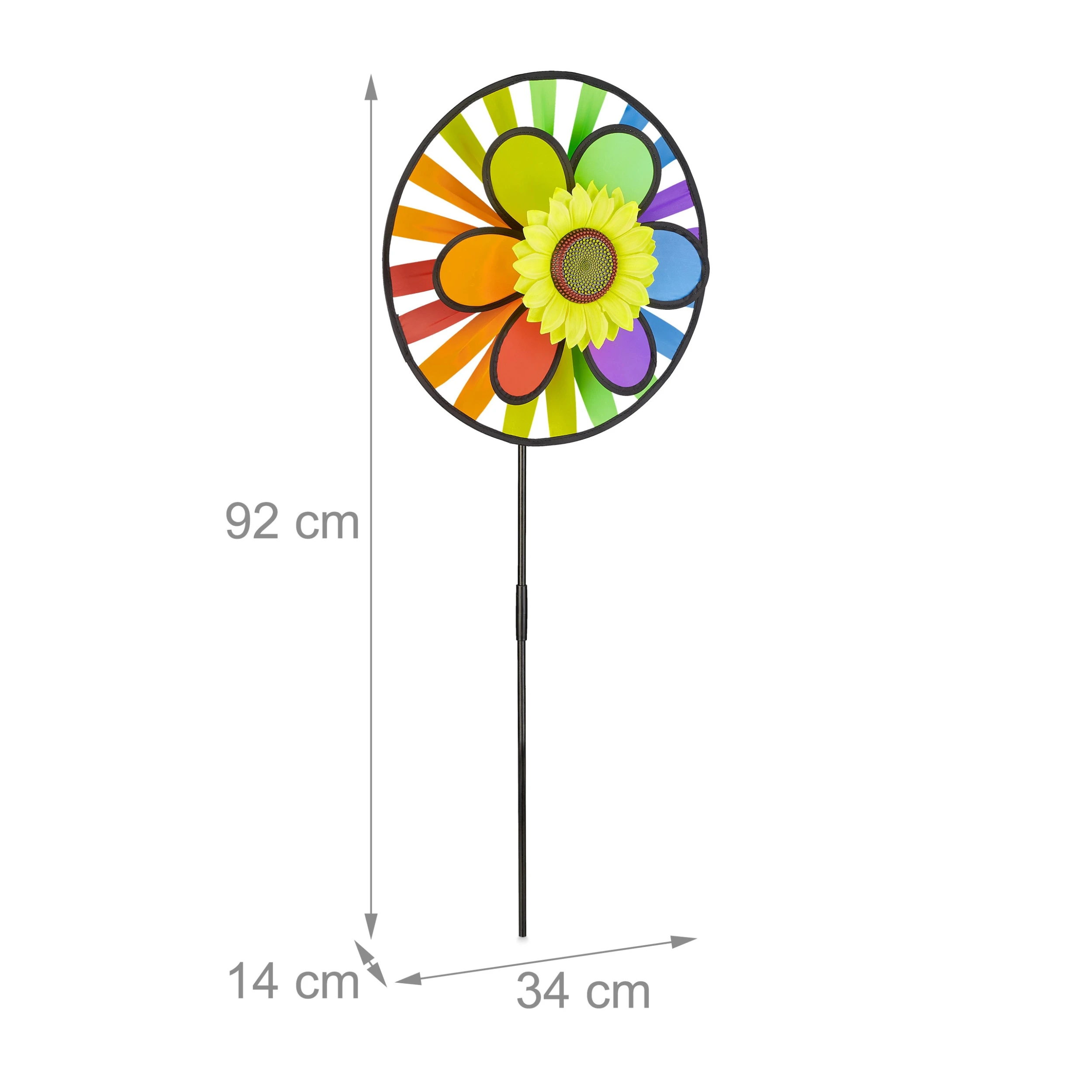 Wenn Sie eine neue Dekoration für Terrasse oder Balkon suchen, treffen Sie mit diesem Windrad die richtige Wahl. Das Windspiel bringt den Regenbogen-Flair direkt zu Ihnen nach Hause und kann Ihnen und Ihren Kindern spielerisch Freude bereiten. Der bunte Look peppt Ihren Garten auf und wird zum Gesprächsthema bei jedem Besuch. Das Balkonwindrad ist sehr stabil und kann per Erdspieß schnell und einfach in den Boden gesteckt werden. Die Windmühle besitzt zwei Drehebenen für doppelten Drehspaß.