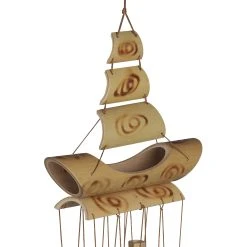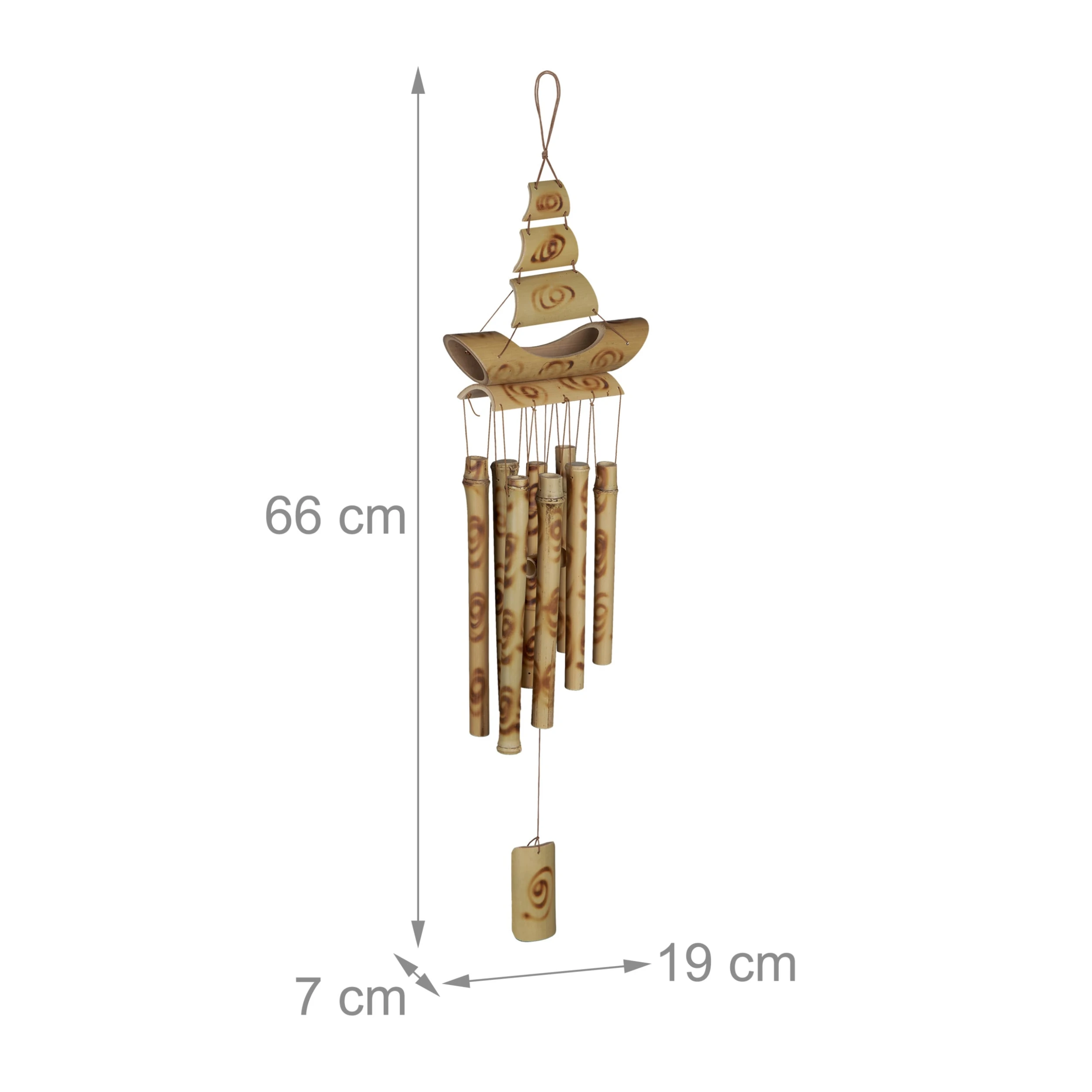Das Bambuswindspiel im Segelboot-Design sieht nicht nur dekorativ aus, sondern erzeugt auch einen warmen, beruhigenden Klang, wenn die Hölzer im Wind sanft zusammenschlagen. Aufgehängt auf dem Balkon, der Terrasse oder im Garten sorgt die Windharfe für eine angenehme Geräuschkulisse und entspannende Feng-Shui-Atmosphäre. Auch in Innenräumen ist die Windorgel eine tolle Hängedeko, die in Fensternähe wunderbar zur Geltung kommt und vor allem Asia-Fans in ihren Bann zieht.