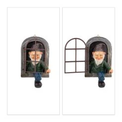 Verwandele Deinen Garten mit diesem Baumwichtel in eine märchenhafte Kulisse. Die Zwergenfigur kannst Du dank Aufhängung ganz einfach an einem Stamm befestigen. Der Gartengnom mit klappbarem Gitterfenster ist derart plastisch gestaltet, als ob der Wichtel regelrecht zum Betrachter heraussteigen würde. Vor allem Kinder werden ihre Freude an dieser liebevoll gestalteten Baumdekoration haben. Das Zwergentürchen aus wetterfestem Kunststein ist ein Muss für Fans von Zwergen, Gnomen und Wichteln.
