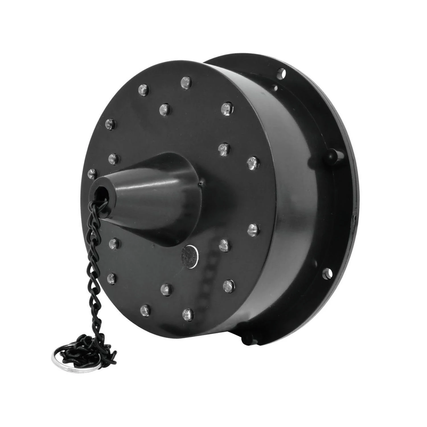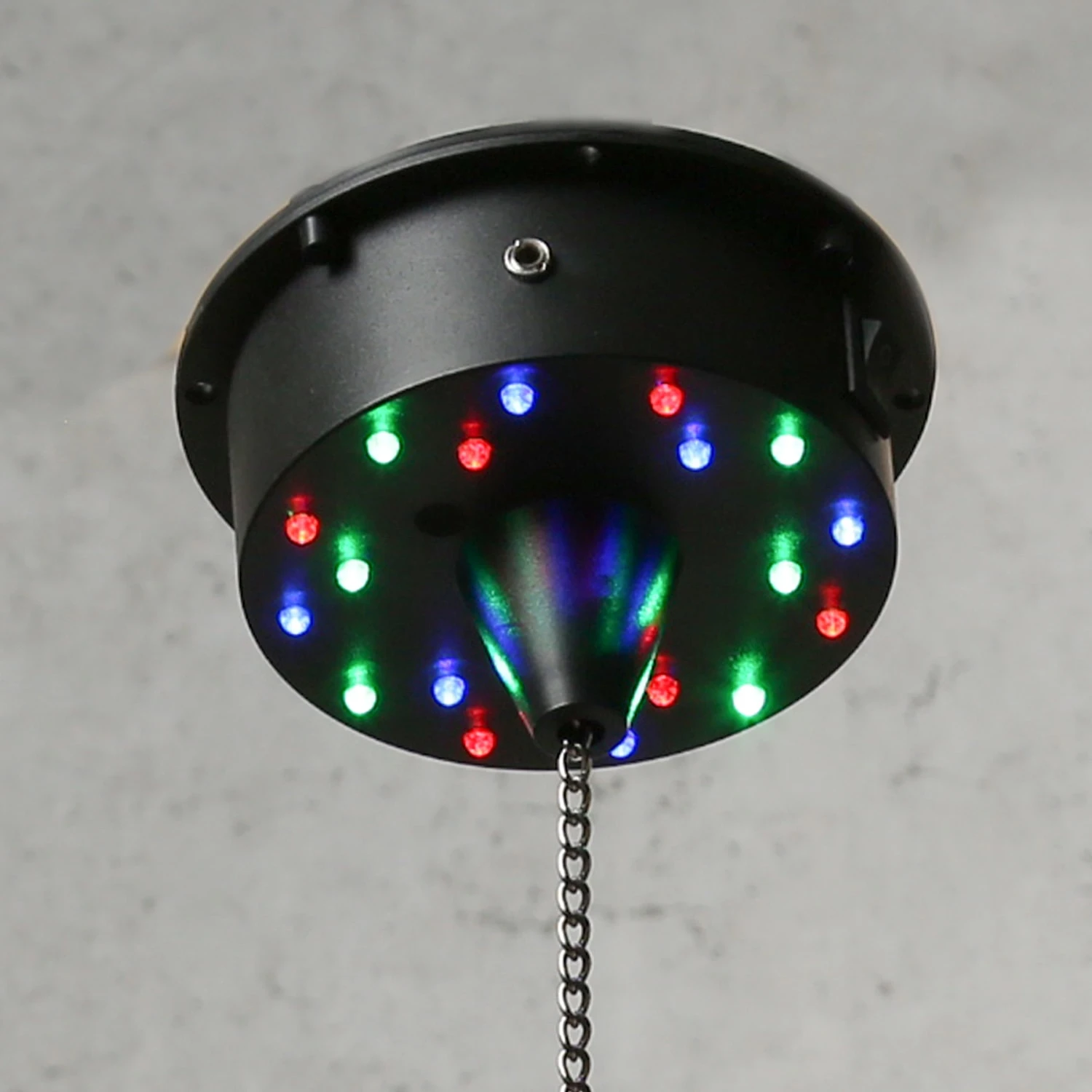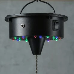 Kunststoffgehäuse mit 18 LED ( 6x weiß, 4x grün, 4x blau und 4x rot) bestückt, die statisch nach unten die Kugel anstrahlen