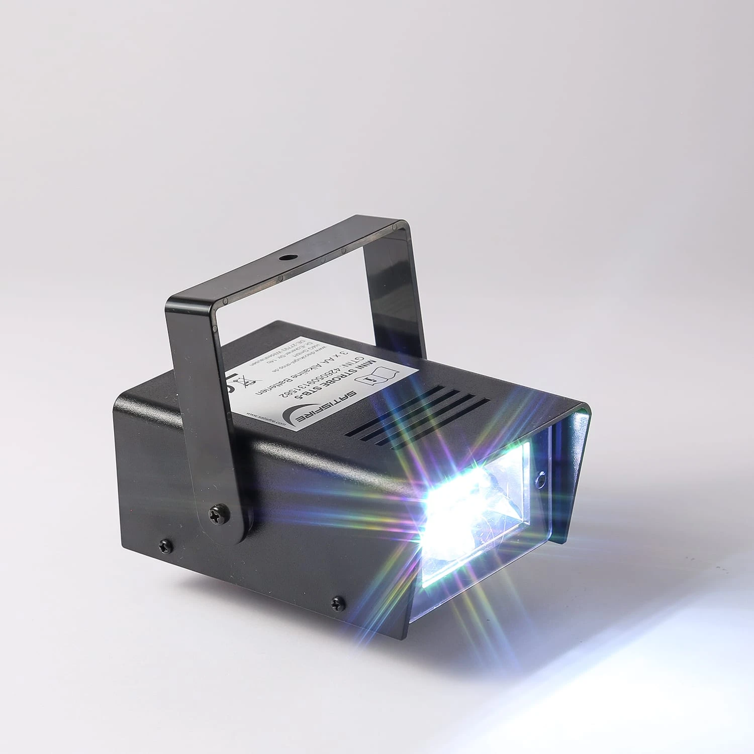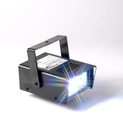 Dieses mobile Stroboskop arbeitet mit 5 hellweißen LED. Durch die Blitzfrequenz entstehen die typischen Discoeffekte die bei energiegeladener Musik gerne eingesetzt werden.