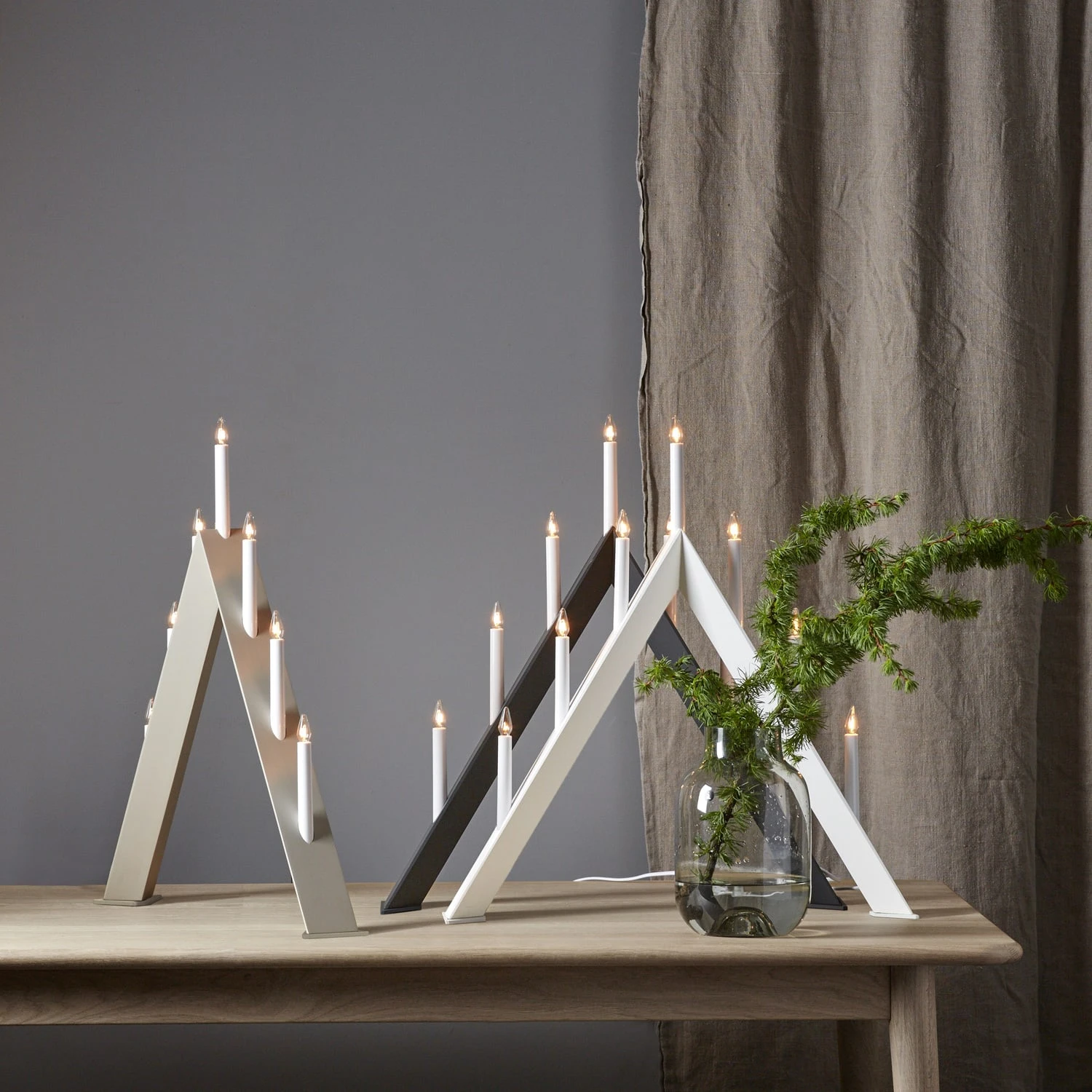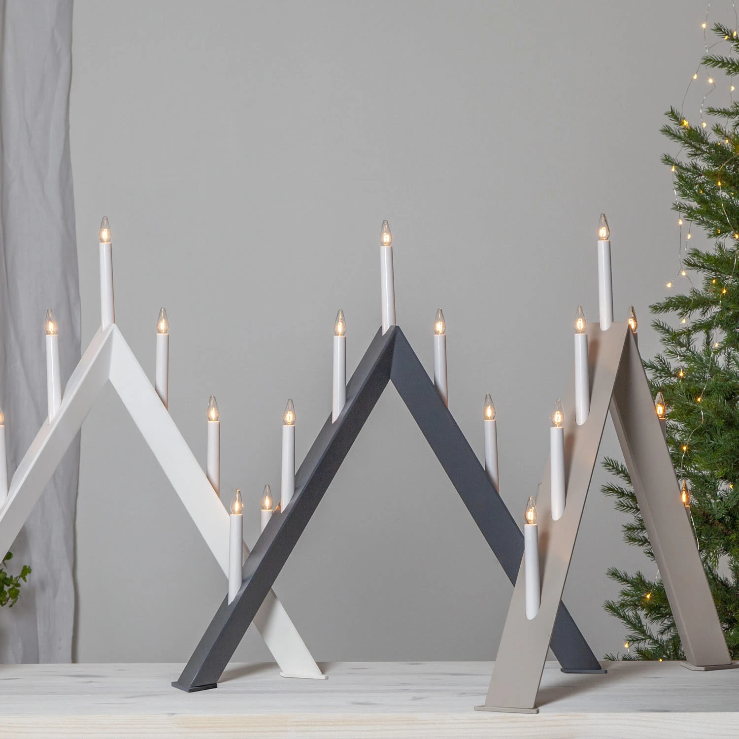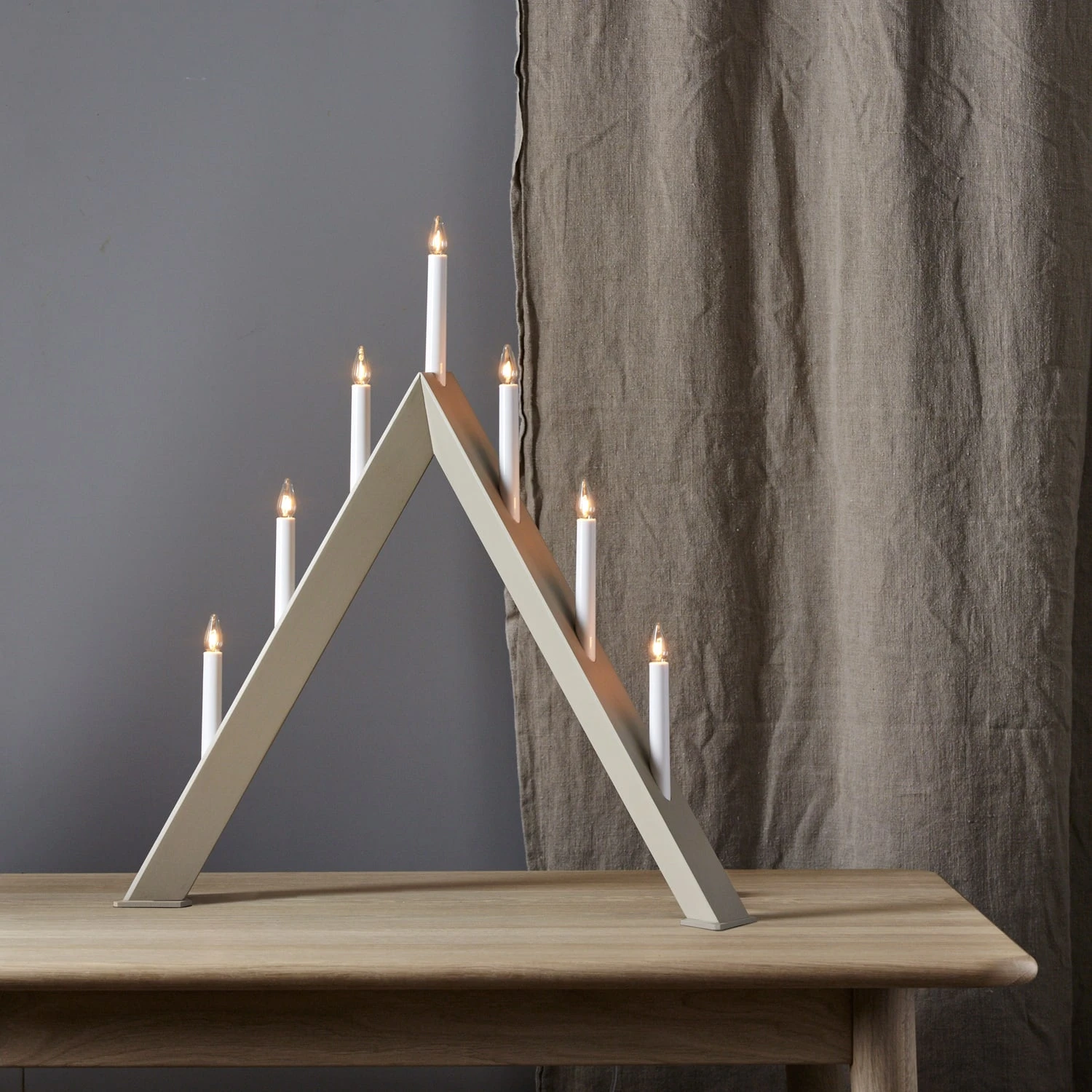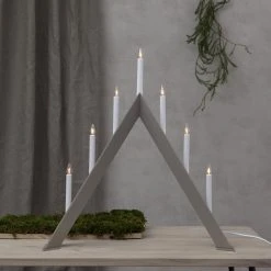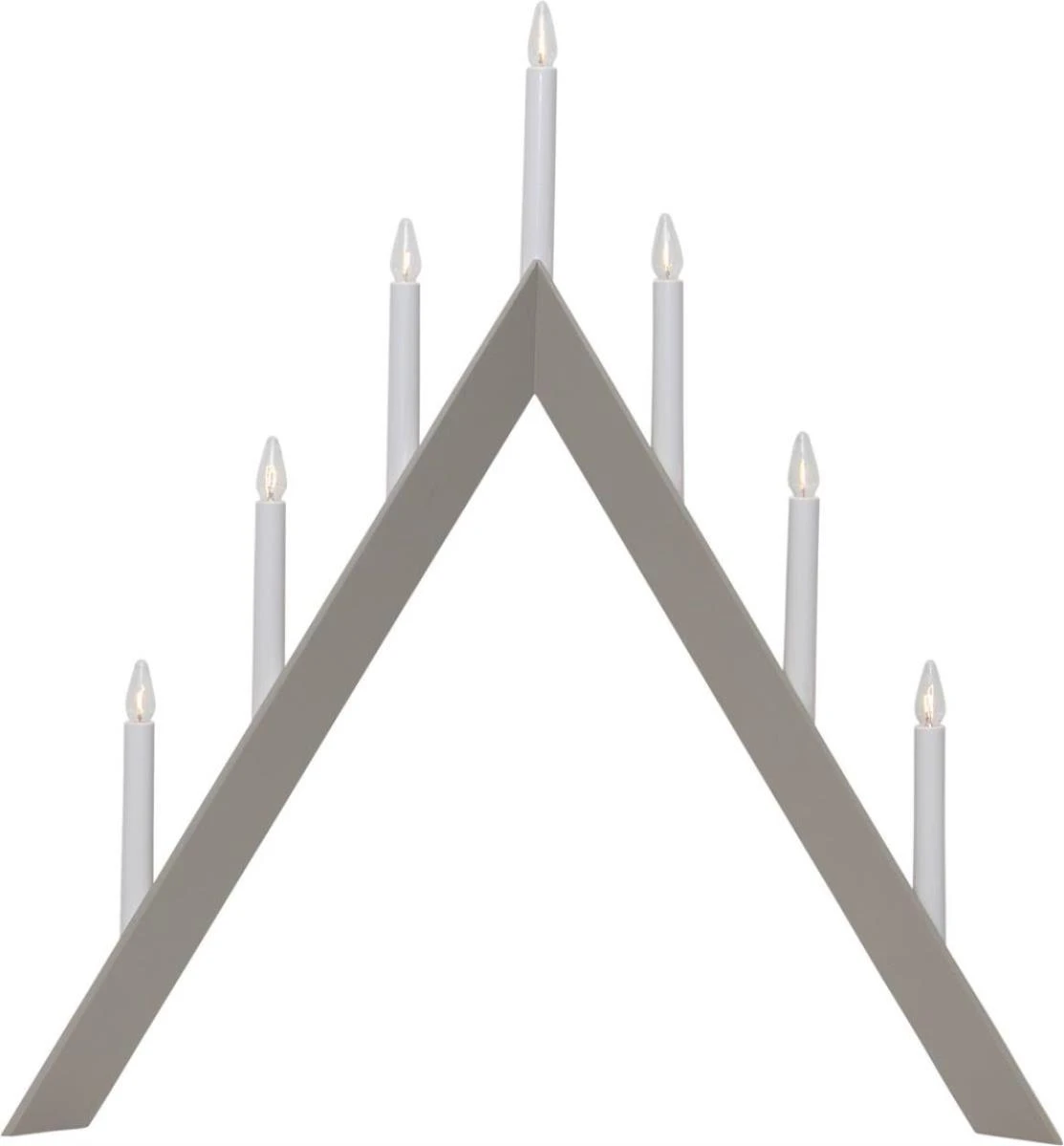 Fensterleuchter ARROW – 7 warmweiße Glühlampen – L: 60cm, H: 64,5cm – Holz – Schalter – Hellgrau Hohe: 64,5cm