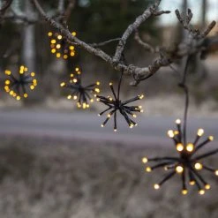 LED Lichterkette Feuerwerk – 10 Büschel – 200 bernsteinfarbene LED – L: 4m – Trafo – für Außen – schwarz