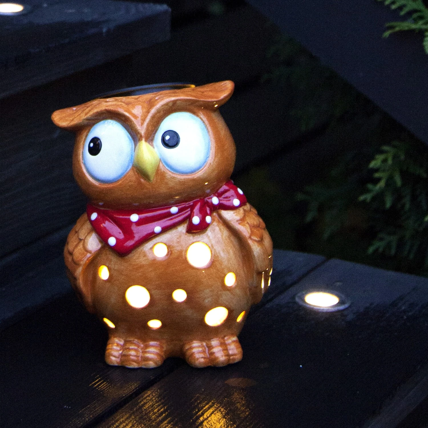LED Solar Gartenfigur Eule – warmweiße LED – H: 16cm – Dämmerungssensor – orange