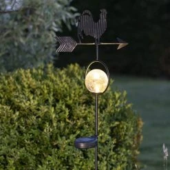 LED Solar Gartenstecker Hahn mit Windrichtungspfeil – 1 warmweiße LED – H: 81cm – Lichtsensor