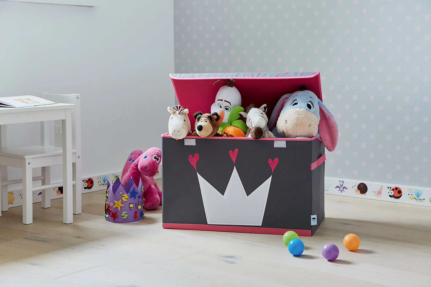 Dank der großen Spielzeugkiste mit Lieblingsmotiv sind die Spielsachen immer ordentlich an ihrem Platz! Diese Box überzeugt nicht nur durch ihr Motiv und Farbe, sondern auch durch ihre Funktionalität. Spielsachen können einfach verstaut und die Box dekorativ im Kinderzimmer gestellt werden. Die perfekte Ausstattung für ein ordentliches Zimmer!