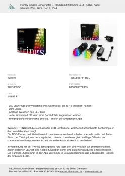 Gruppieren mit anderen TWINKLY Produkten möglich, nur innerhalb RGB oder RGBW, AWW Produkten sortenrein.