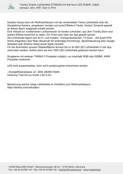 Für die Illumination grosser Objekte/Bäume können bis zu 3x 400 LED Lichterketten in der App verbunden werden, welche dann als eine 1200 LED Lichterkette gesteuert werden kann.