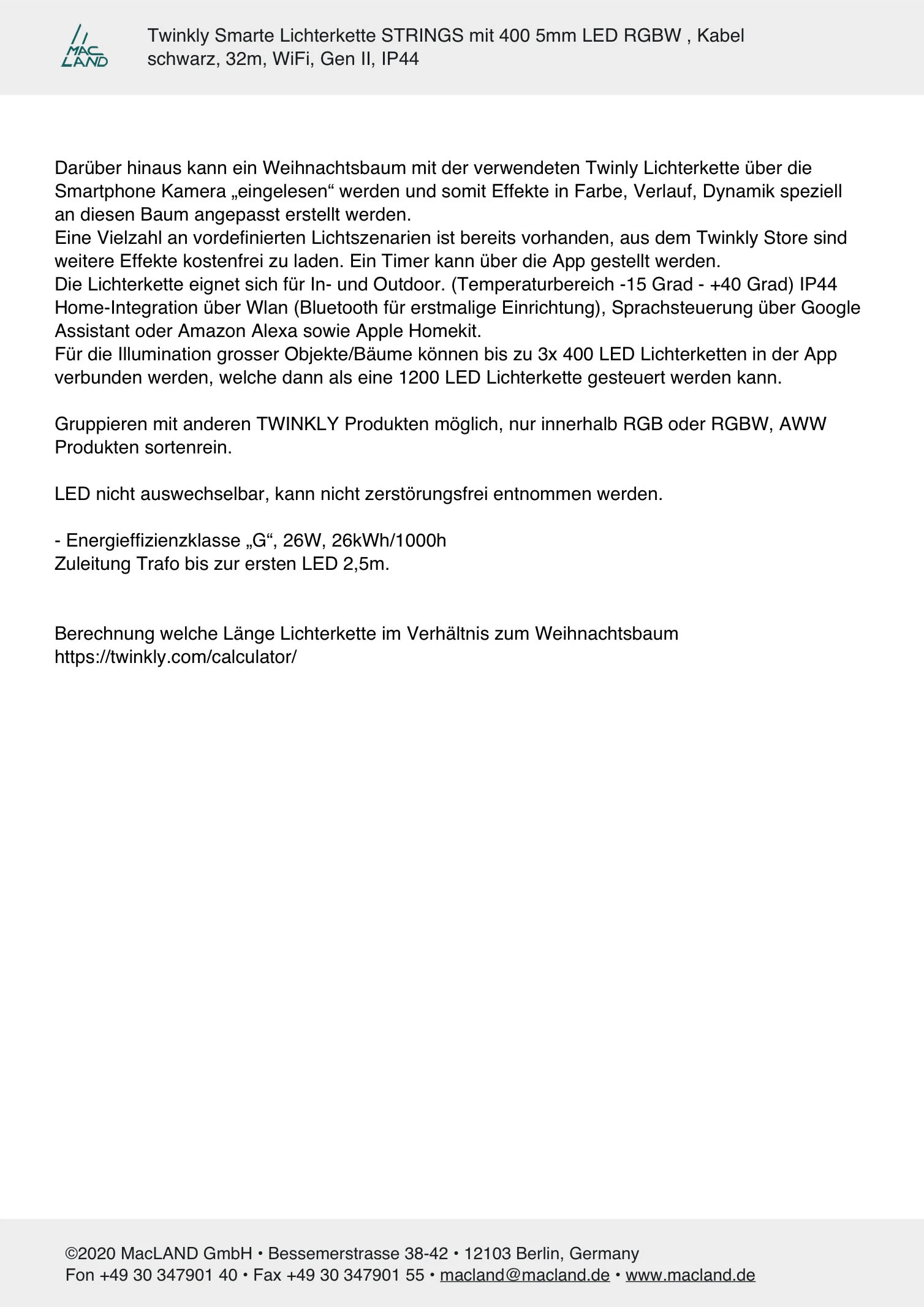 Gruppieren mit anderen TWINKLY Produkten möglich, nur innerhalb RGB oder RGBW, AWW Produkten sortenrein.