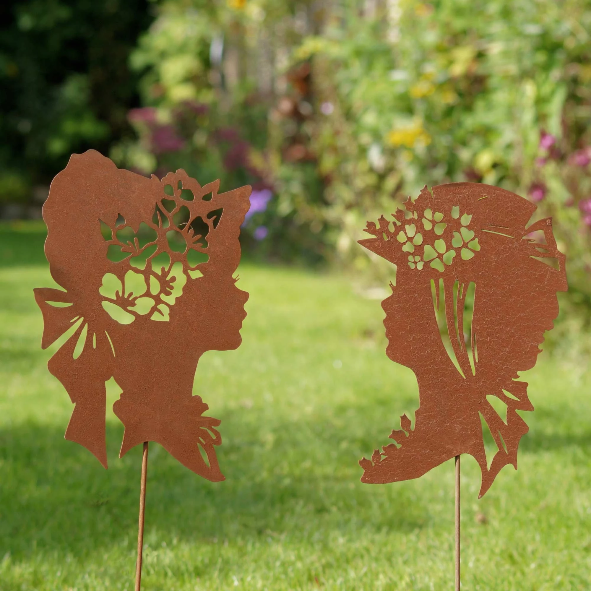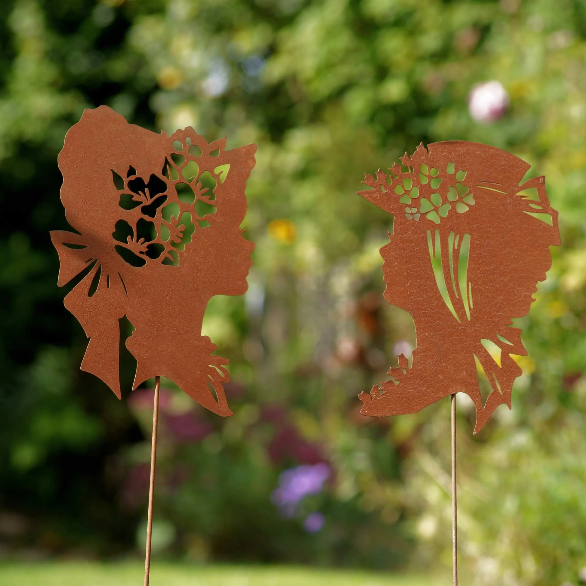 UNUS GARDEN Gartenstecker Damen mit Hut 2er Set, Gartendeko Rostoptik, Gartenstecker aus Edelrost Metall, Rost Deko für Garten Terrasse Balkon