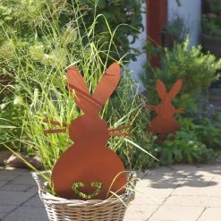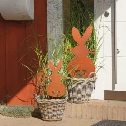 Die Hasen bestehen aus robustem und hochwertigen Metall mit einer einzigartigen Rostoptik. Die Roststecker sind witterungsfest und frostfest. Sie können sie das ganze Jahr über draußen stehen lassen. Die Gartenstecker eignen sich auch hervorragend als außergewöhnliches und kreatives Geschenk für Gartenfreunde und Dekofans! Die Pflanzenstecker lassen sich ganz bequem und unkompliziert aufstellen. Die Hasen werden zum Hingucker in Ihrem Garten und ziehen die Blicke Ihrer Nachbarn auf sich.
