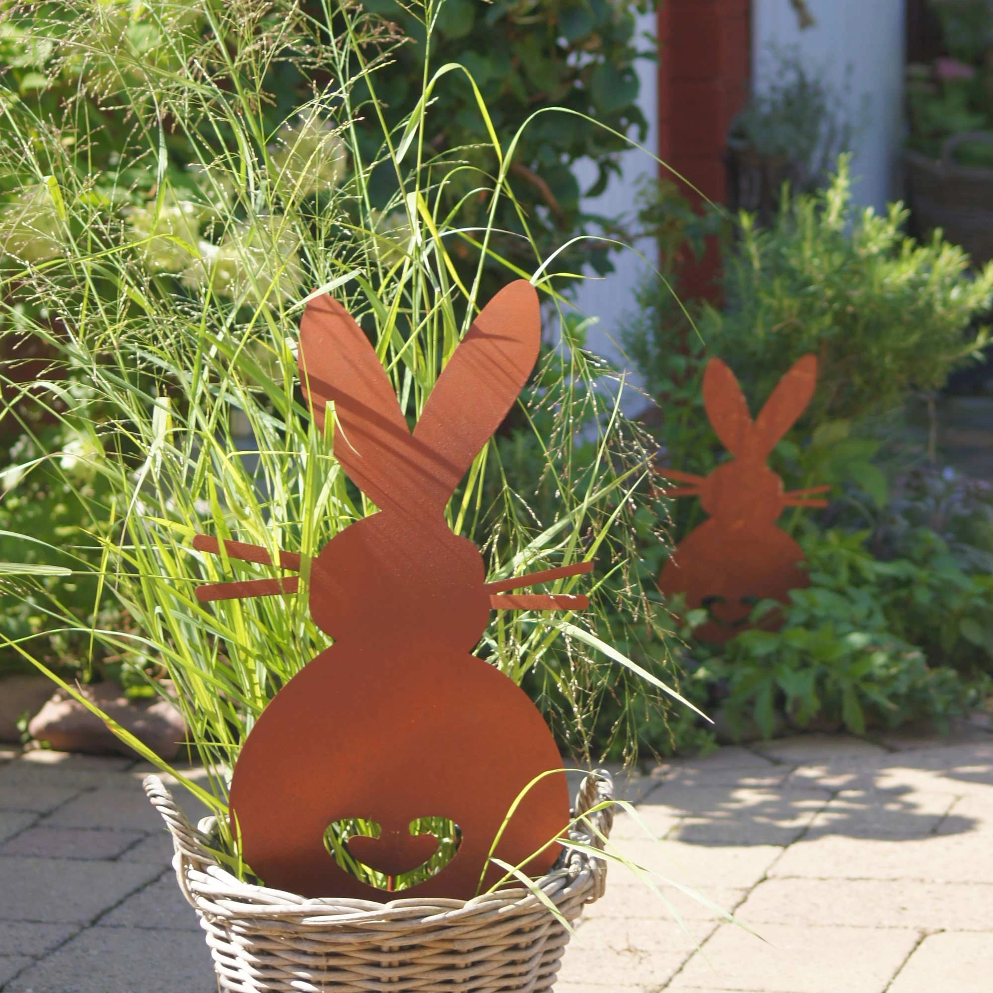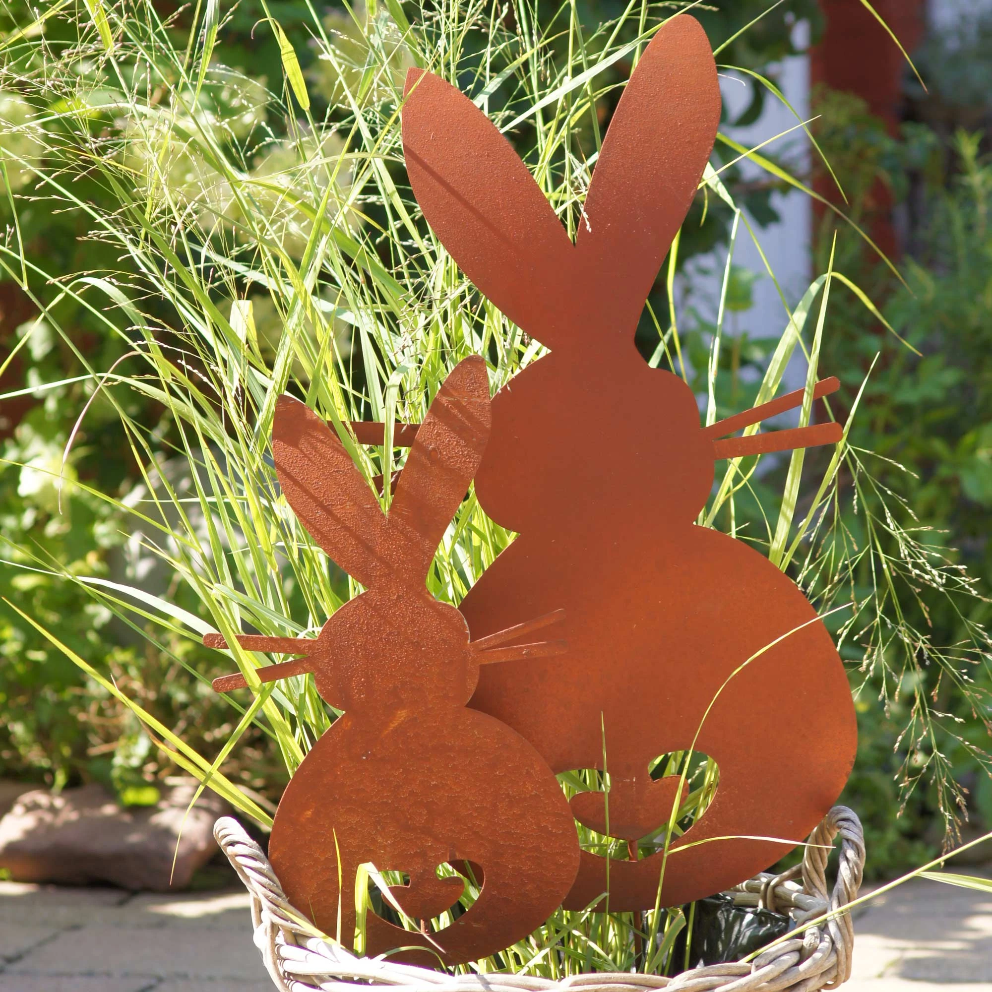 UNUS Garden Hasen Gartenstecker 2er Set, Gartendeko Rostoptik, Roststecker aus Edelrost Metall, Rost Deko für Garten Terrasse Balkon