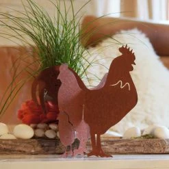 Der Sommer steht vor der Tür und die warmen Tage im Garten können kommen! Machen Sie Ihr Zuhause mit unserem Gartenstecker aus Edelrost noch schöner. Die wunderschöne Hühnerfamilie lässt sich in fast jeder Umgebung integrieren. Die kunstvoll gezeichneten, feinen Formen bringen das gewisse Etwas in Ihren Garten. Die Handhabung der Figur ist kinderleicht. Einfach die Steckelemente zusammenstecken und platzieren. Schon ist Ihr Garten oder Zuhause dekoriert.
